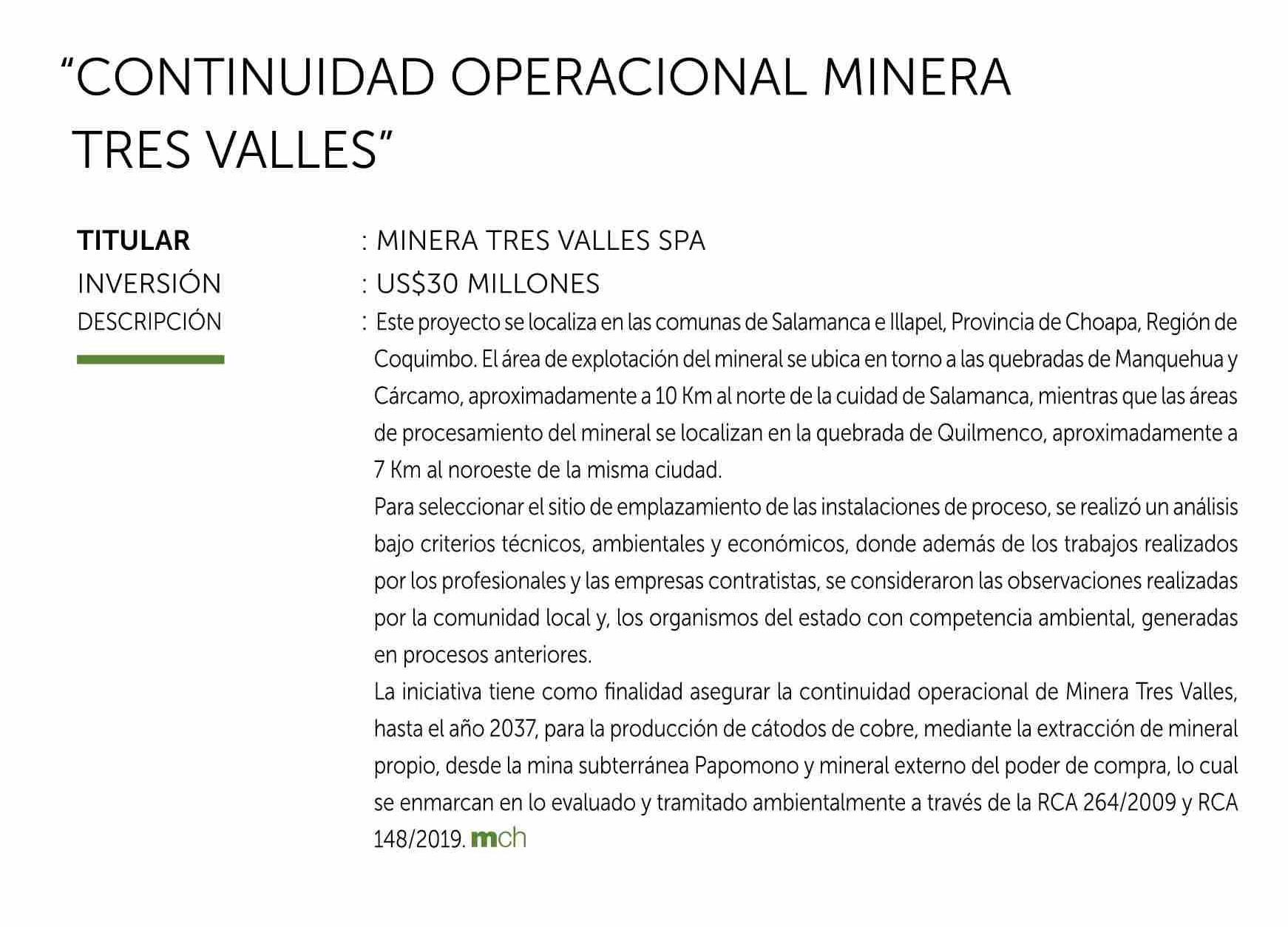 | Título: | “CONTINUIDAD OPERACIONAL MINERA TRES VALLES” |
