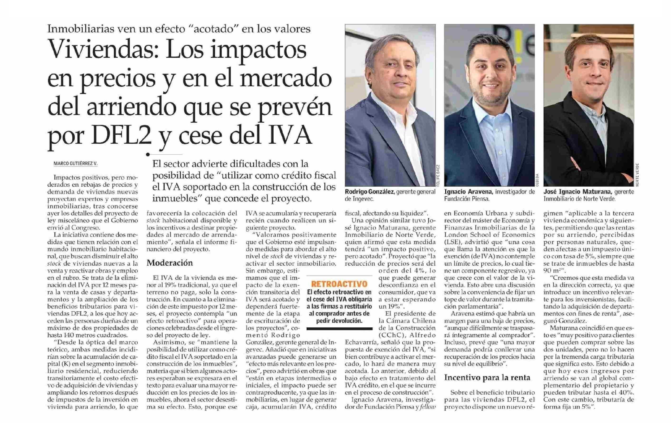 Viviendas: Los impactos en precios y en el mercado del arriendo que se prevén por DFL2 y cese del IVA 23-04-2026 El Mercurio |