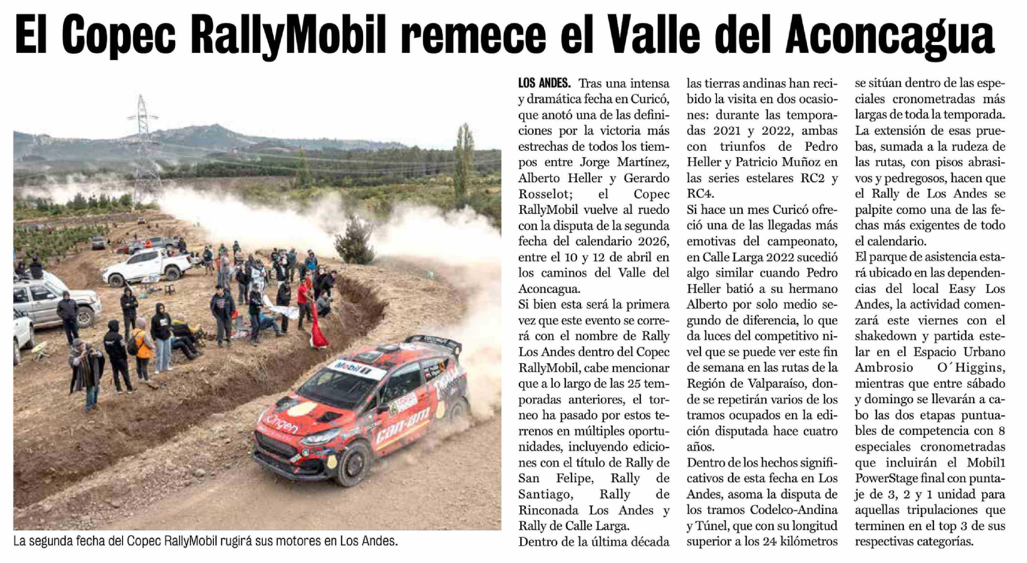 El Copec RallyMobil remece el Valle del Aconcagua 09-04-2026 La Prensa de Curicó |