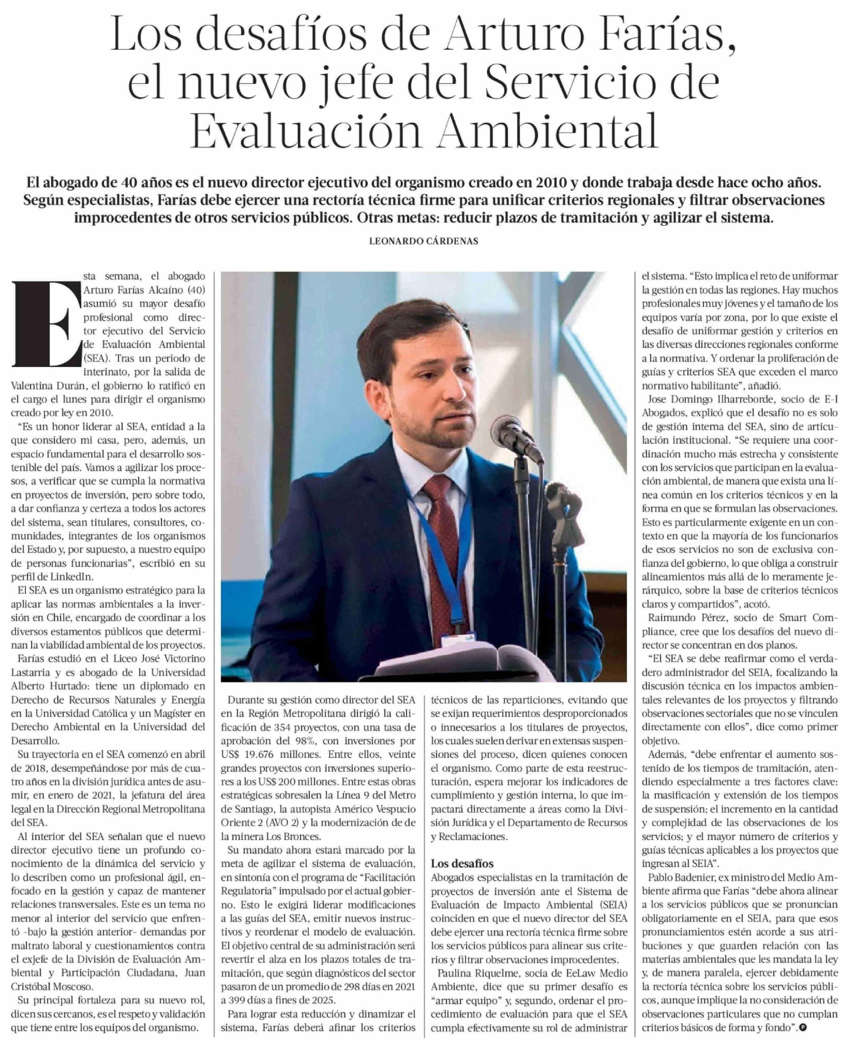 Los desafíos de Arturo Farías, el nuevo jefe del Servicio de Evaluación Ambiental 11-04-2026 La Tercera |