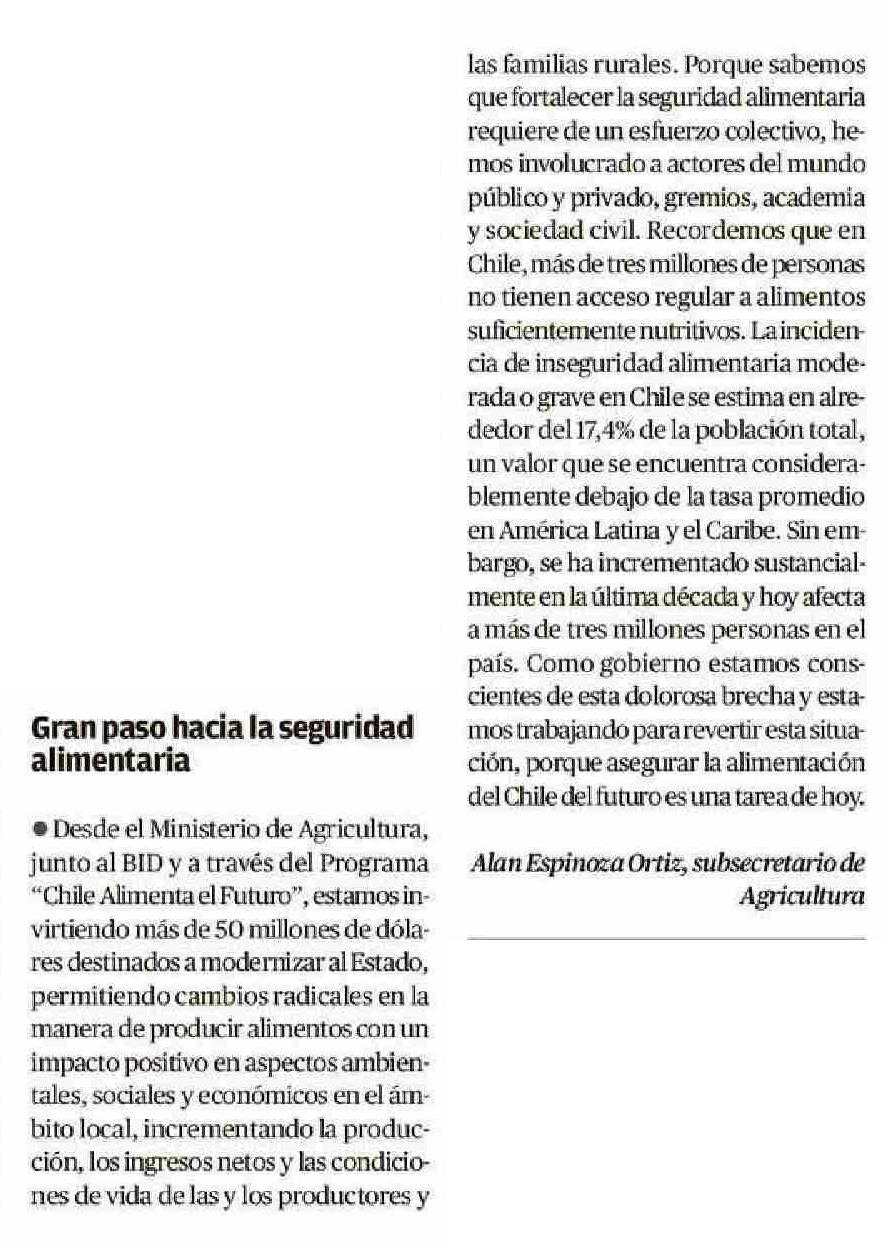 CARTAS: Gran paso hacía la seguridad alimentaria 19-06-2025 Crónica de Chillán |