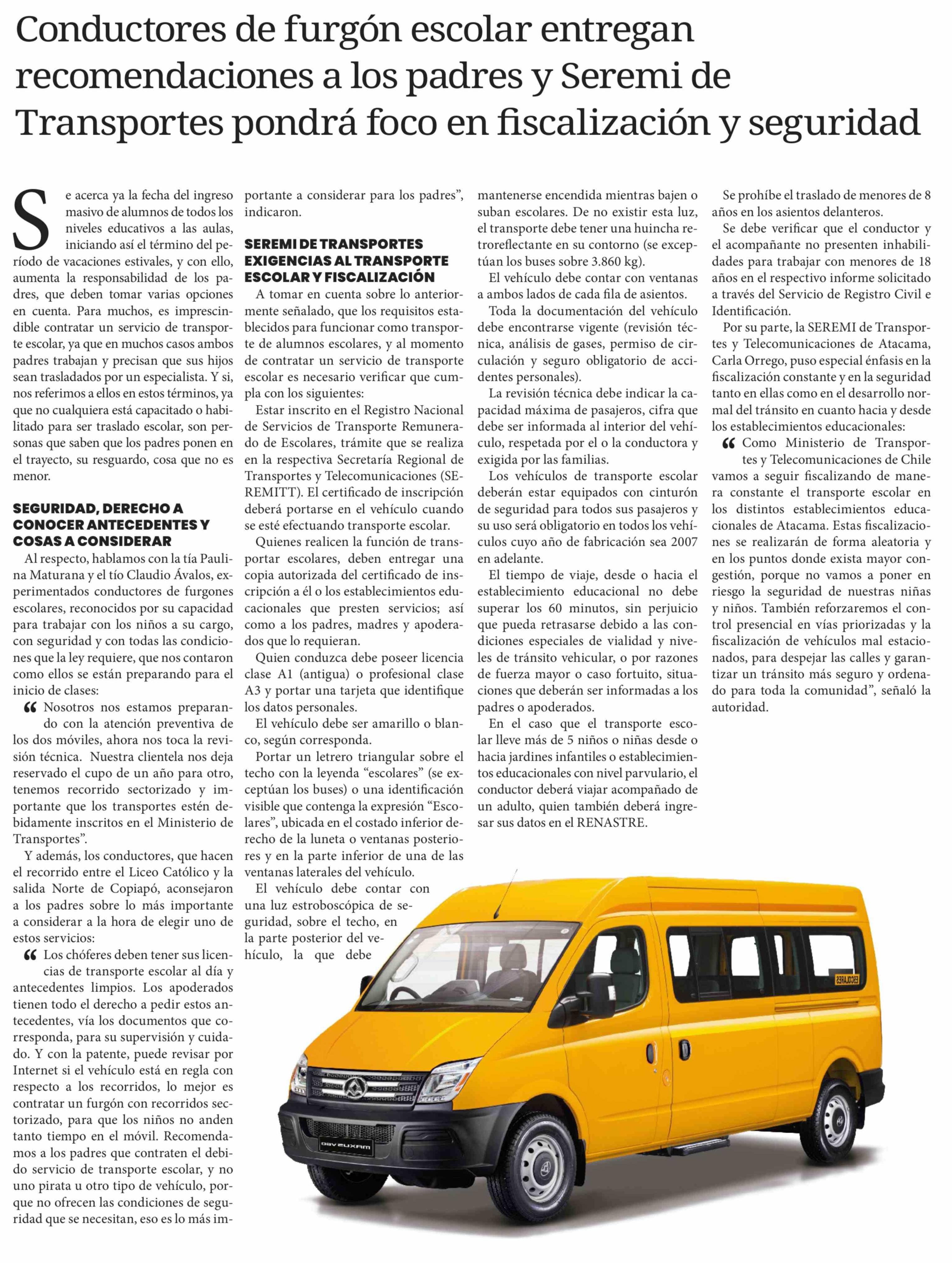 Título: Conductores de furgón escolar entregan recomendaciones a los padres y Seremi de Transportes pondrá foco en fiscalización y seguridad