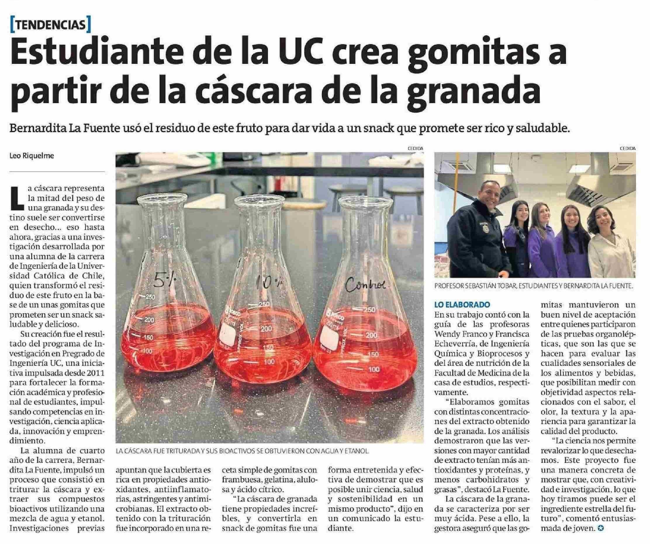 | Título: | Estudiante de la UC crea gomitas a partir de la cáscara de la granada |