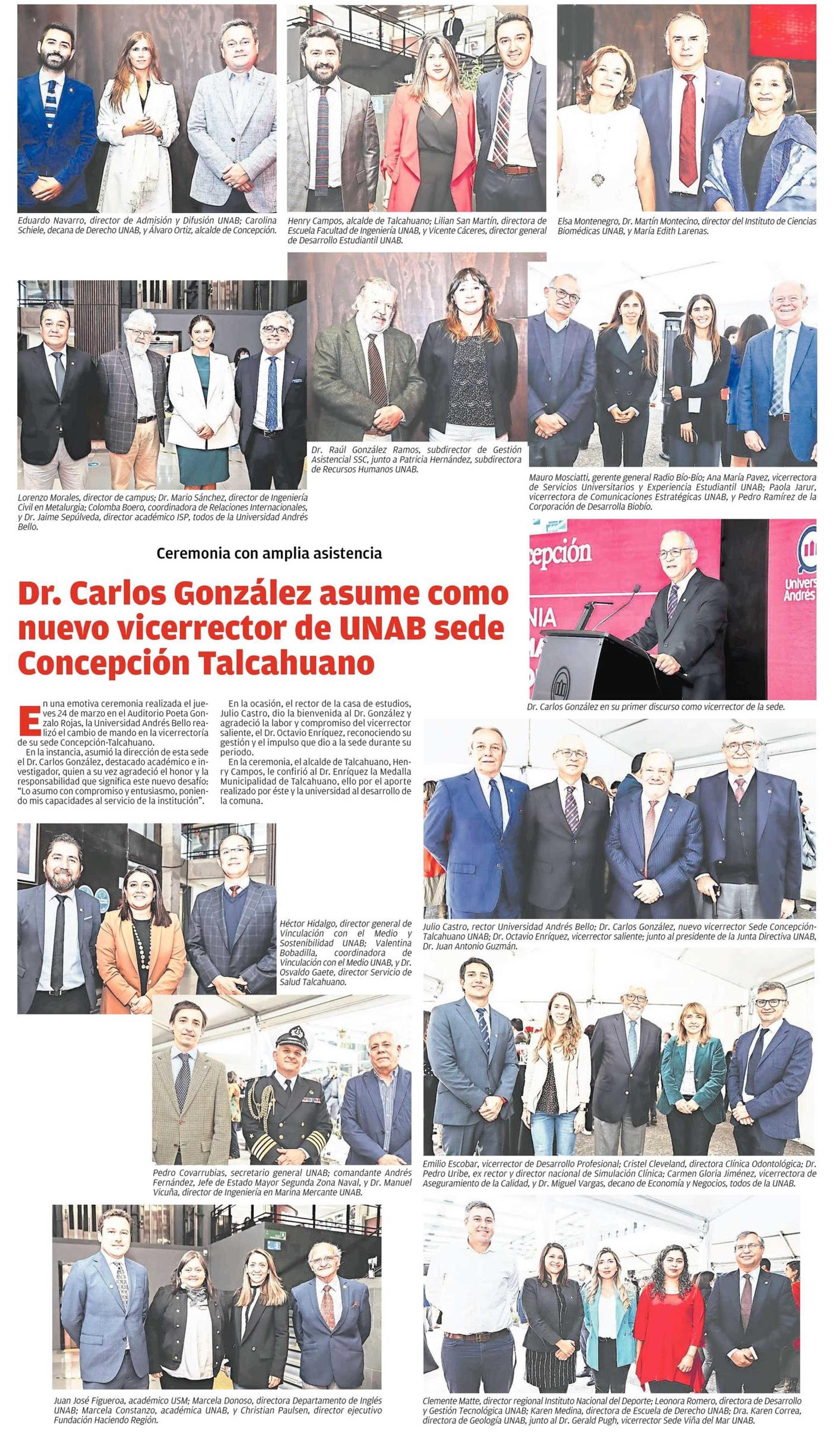 Dr. Carlos González asume como nuevo vicerrector de UNAB sede Concepción Talcahuano 27-03-2022 El Sur |