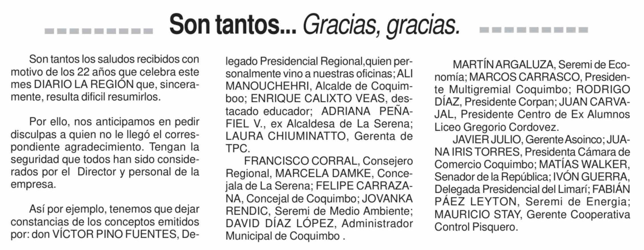 Son tantos ... Gracias, gracias. 19-04-2026 Diario la Región |