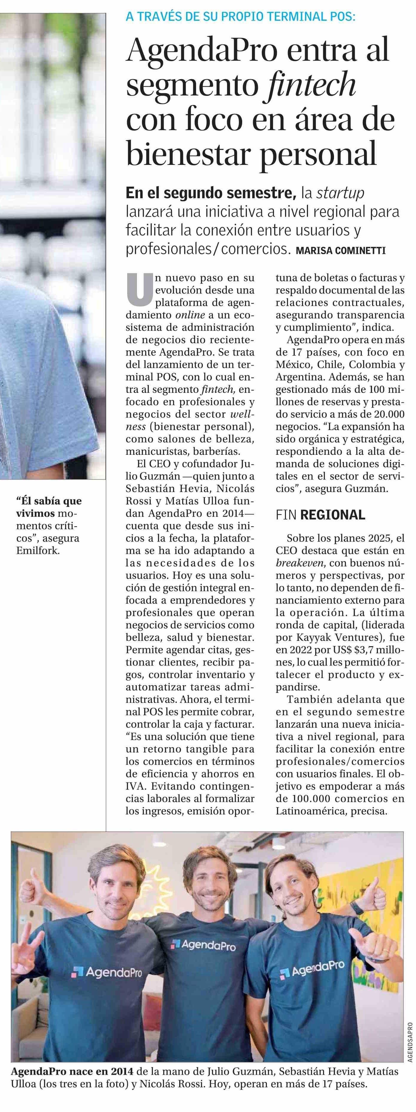 AgendaPro entra al segmento fintech con foco en área de bienestar personal 24-04-2025 El Mercurio |