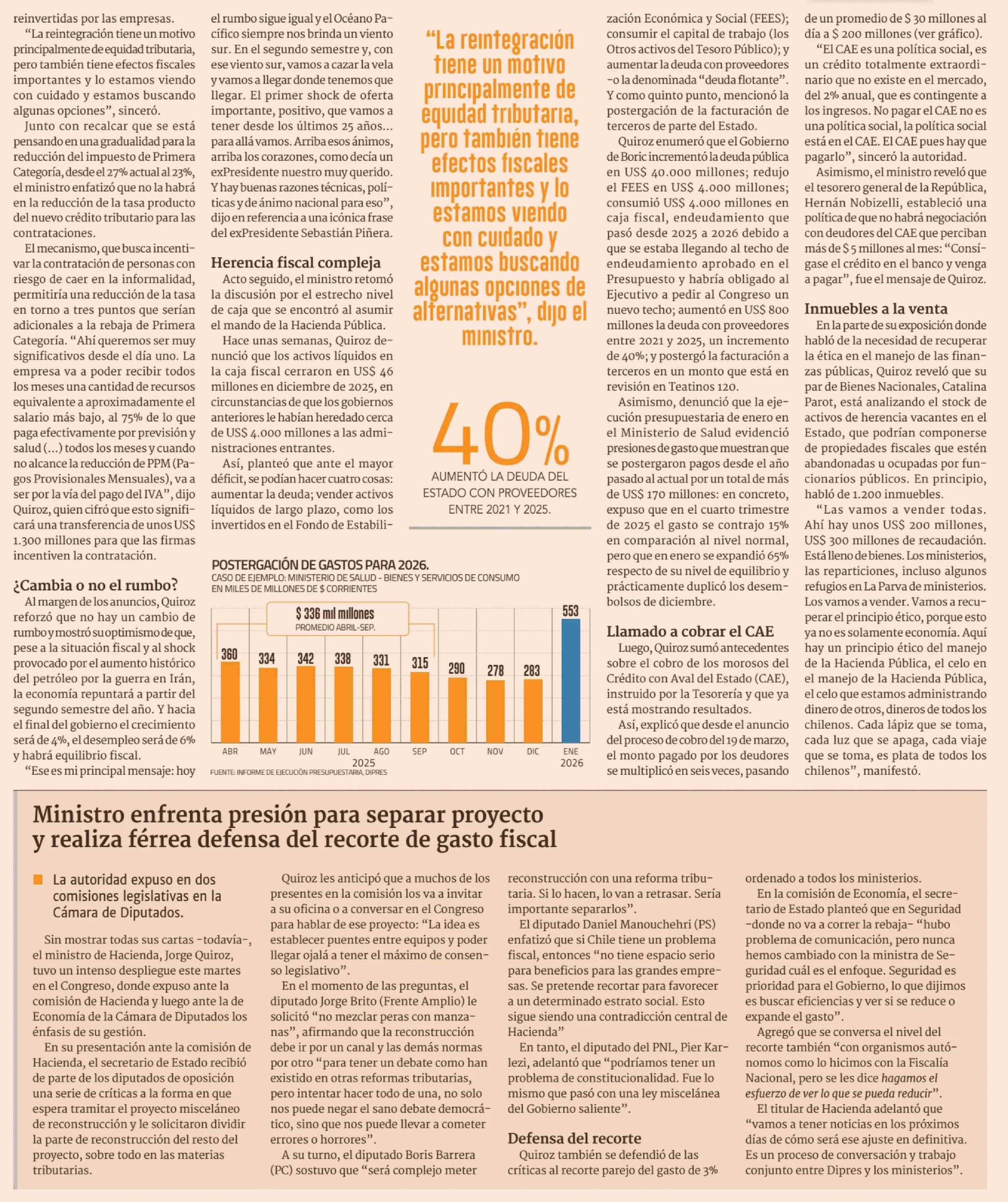 Quiroz anuncia cambios para reducir precios de viviendas y ajustes a la ley miscelánea 08-04-2026 Diario Financiero |