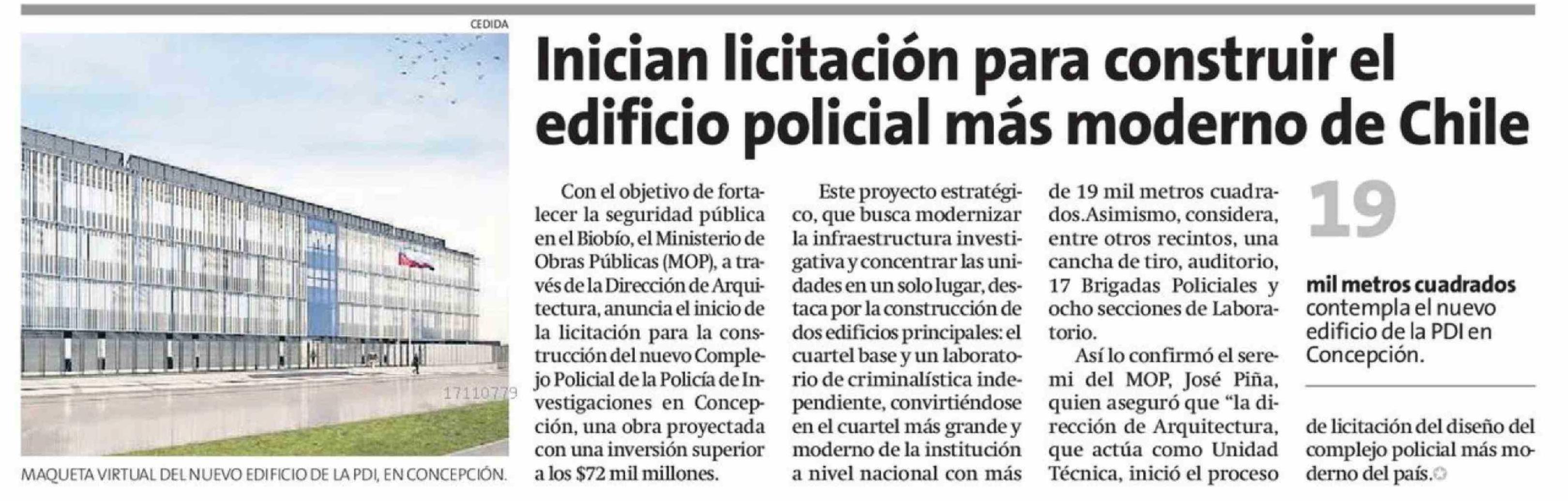 Inician licitación para construir el edificio policial más moderno de Chile 16-04-2026 La Estrella de Concepción |