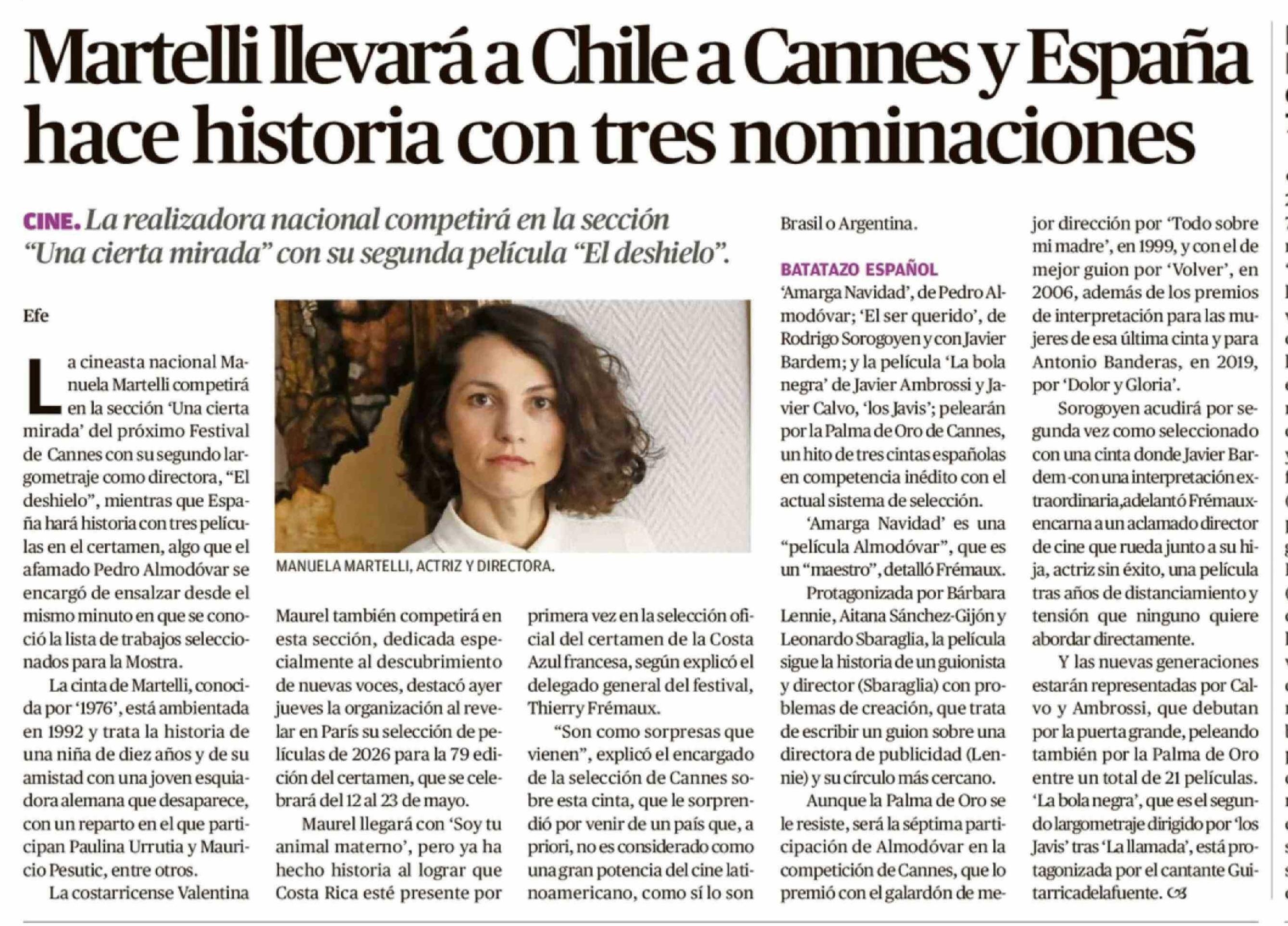 | Título: | Martelli llevará a Chile a Cannes y España hace historia con tres nominaciones |
