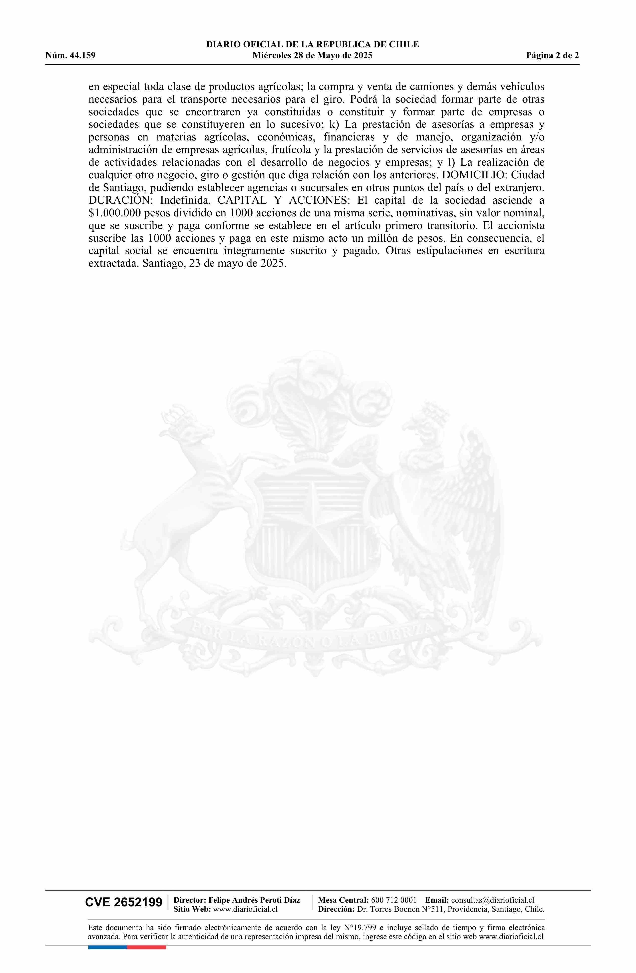 Título: ANDES FRESH FARMERS INTERNATIONAL SpA