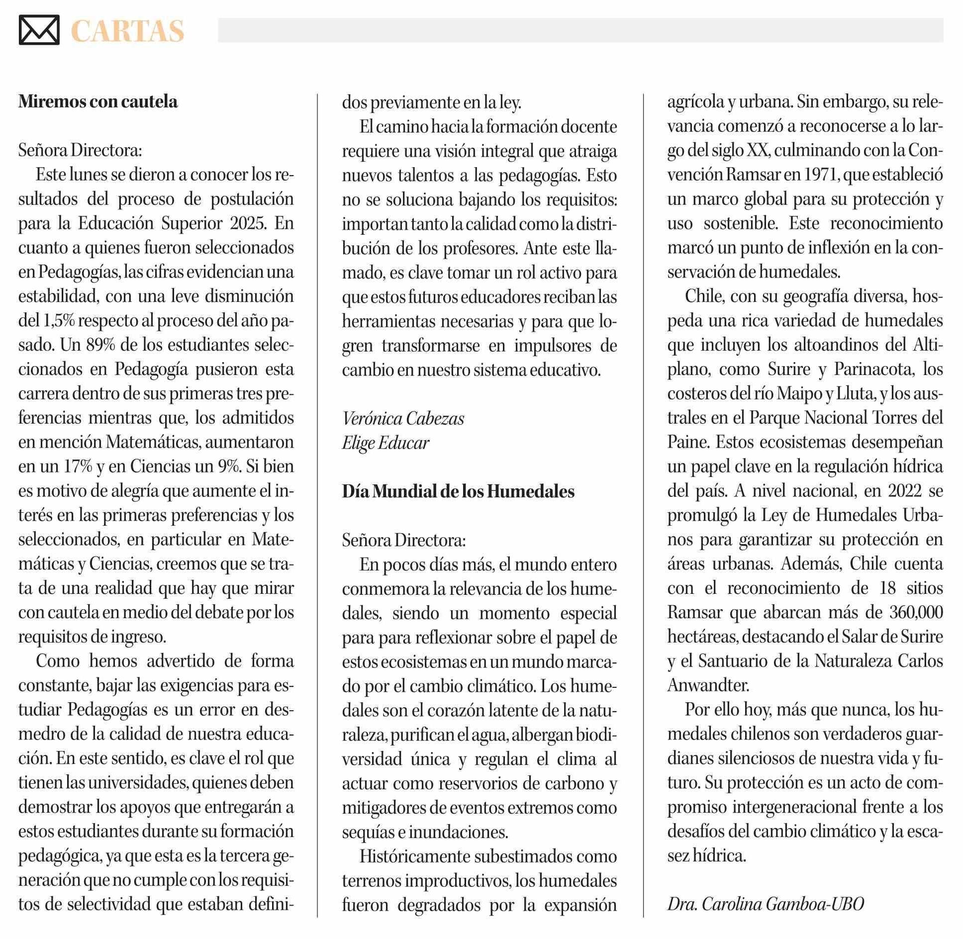 Cartas: CARTAS 23-01-2025 Diario Concepción |