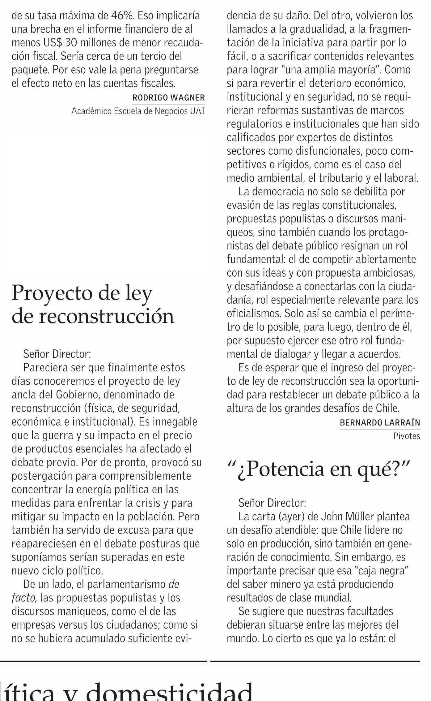 | Título: | CARTAS: Proyecto de ley de reconstrucción |