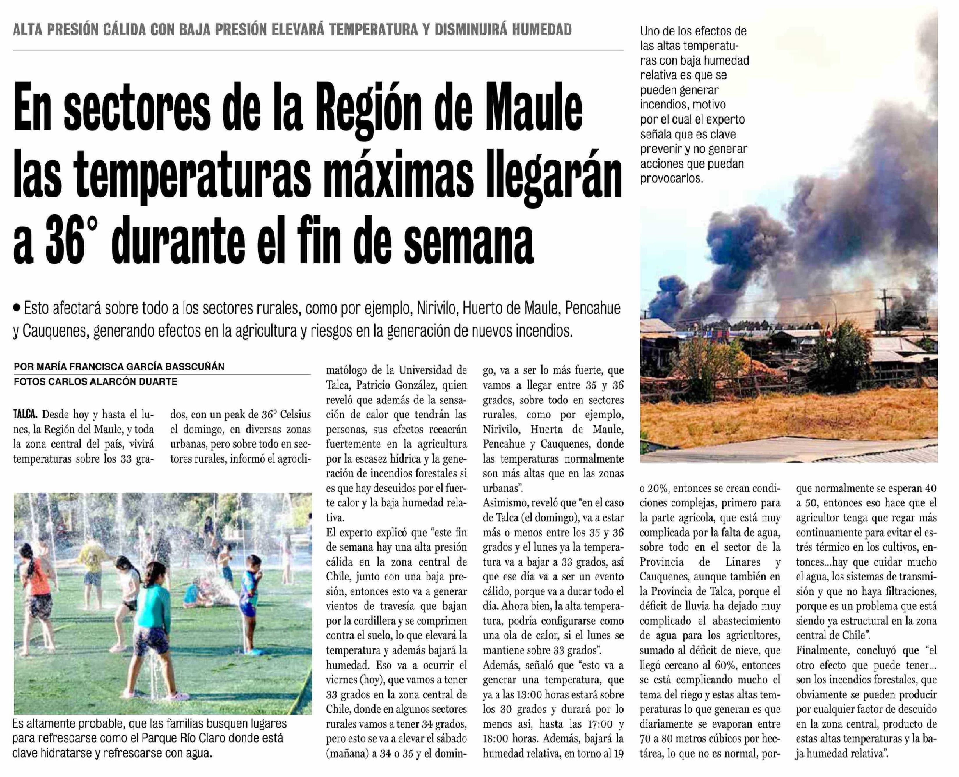 | Título: | En sectores de la Región de Maule las temperaturas máximas llegarán a 36° durante el fin de semana |