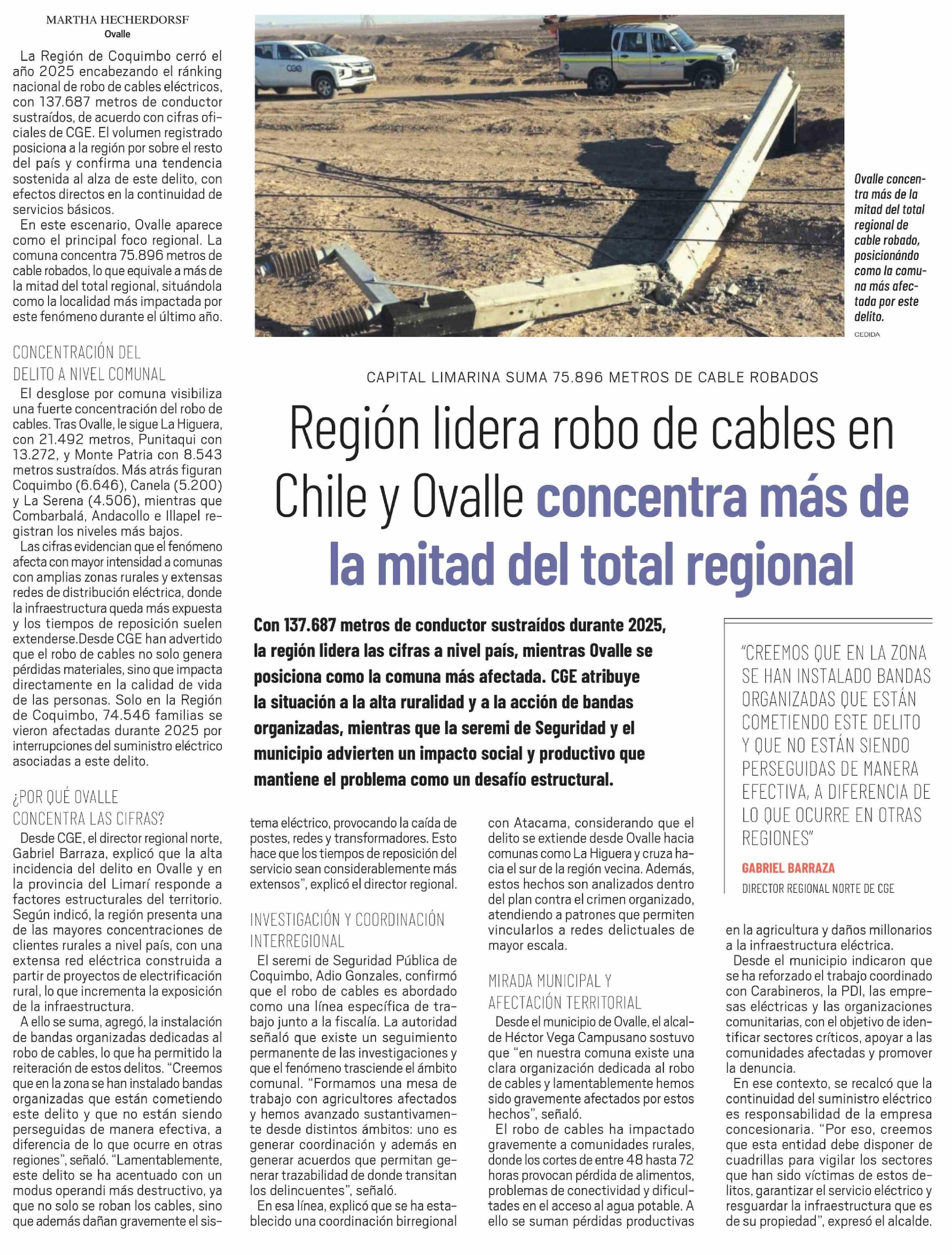 | Título: | Región lidera robo de cables en Chile y Ovalle concentra más de la mitad del total regional |