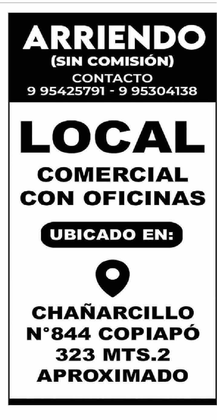 AVISO INMOBILIARIO: COMERCIAL CON OFICINAS N*844 COPIAPÓ 323 MTS.2 APROXIMADO APROXIMADO APROXIMADO APROXIMADO 07-03-2026 El Diario de Atacama |