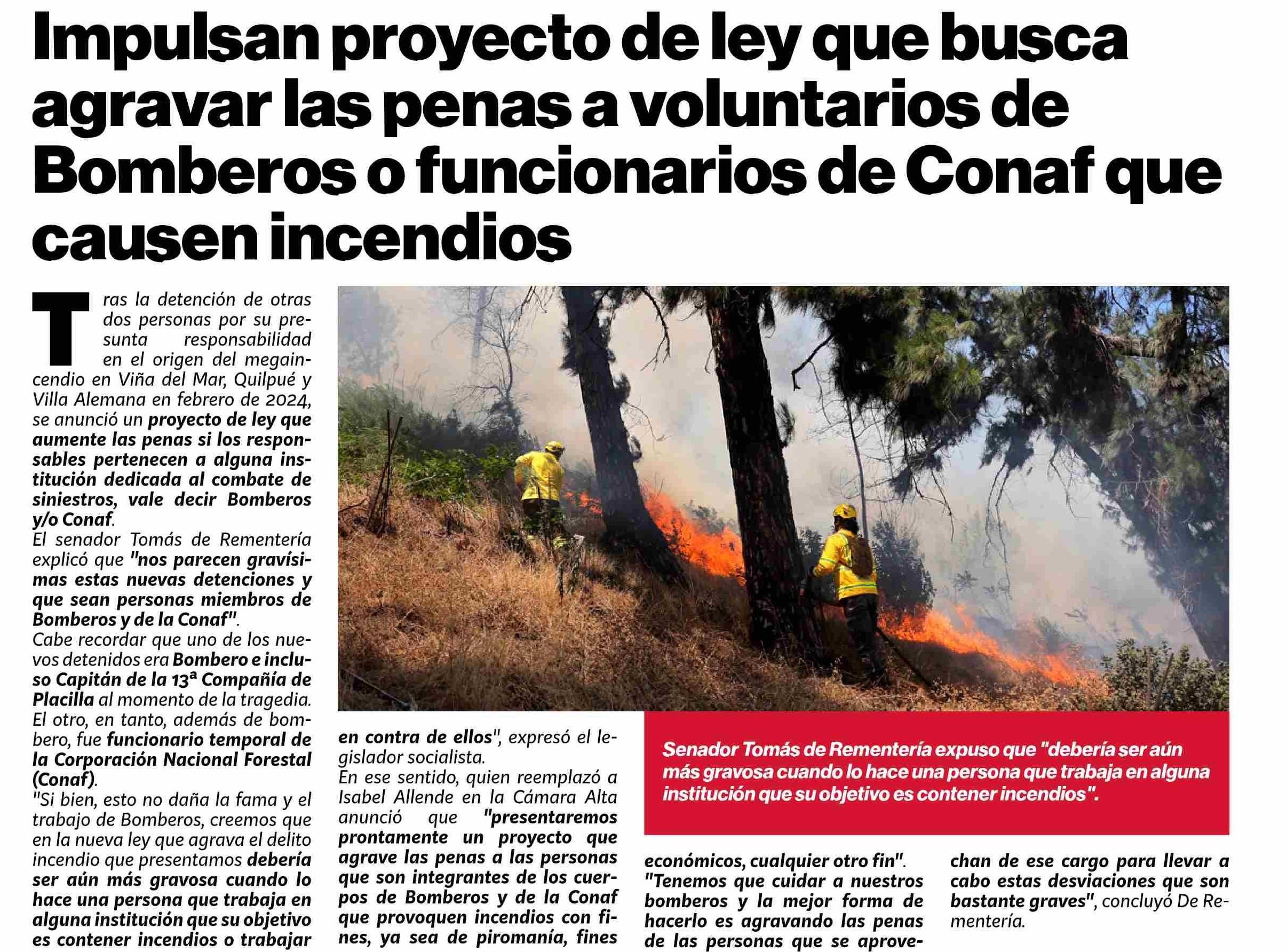 Título: Impulsan proyecto de ley que busca agravar las penas a voluntarios de Bomberos o funcionarios de Conaf que causen incendios