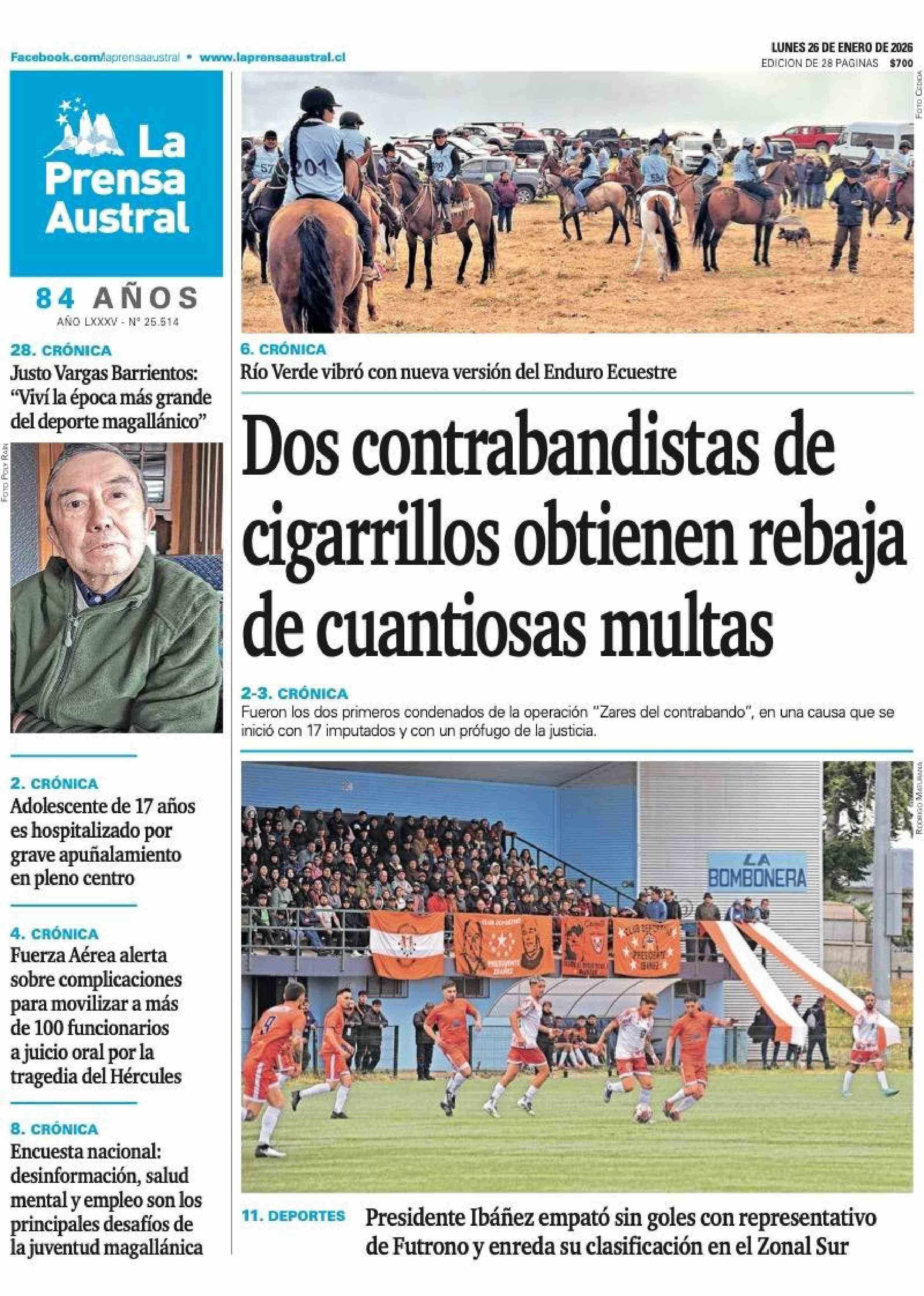 PORTADA LA PRENSA AUSTRAL CHILE 26-01-2026 La Prensa Austral |