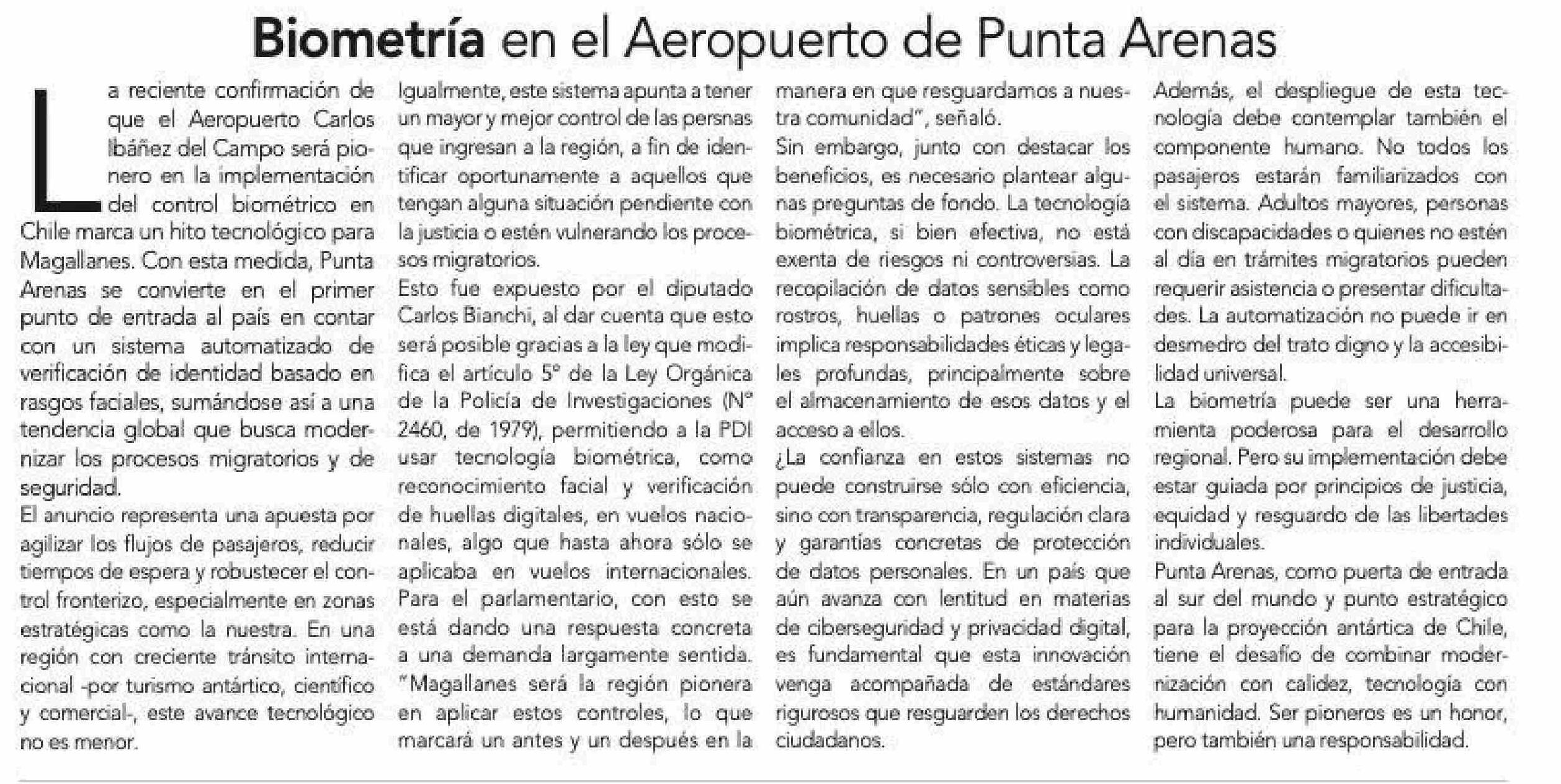 Biometría en el Aeropuerto de Punta Arenas 21-05-2025 La Prensa Austral |