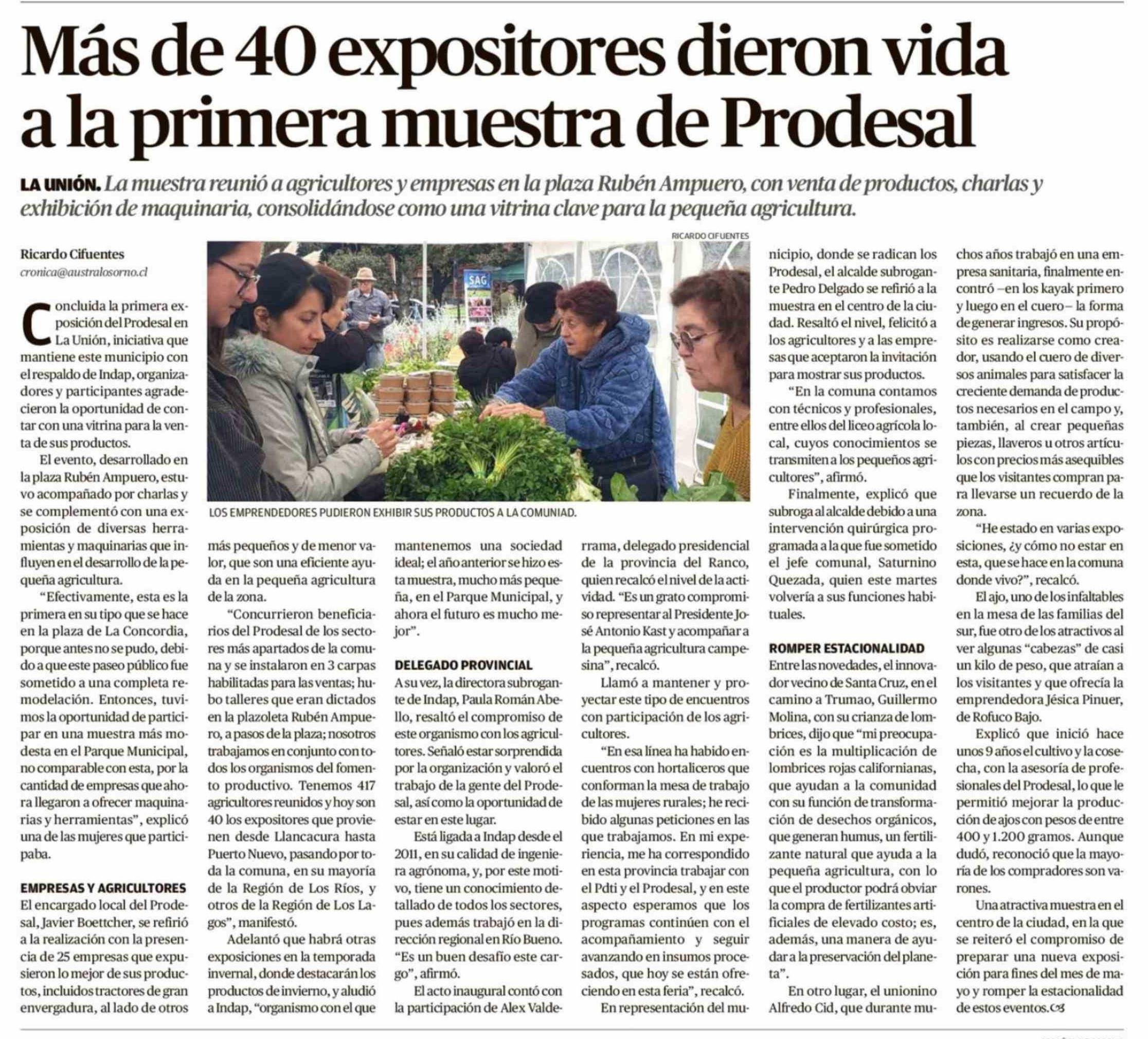 Más de 40 expositores dieron vida a la primera muestra de Prodesal 13-04-2026 El Austral de Osorno |