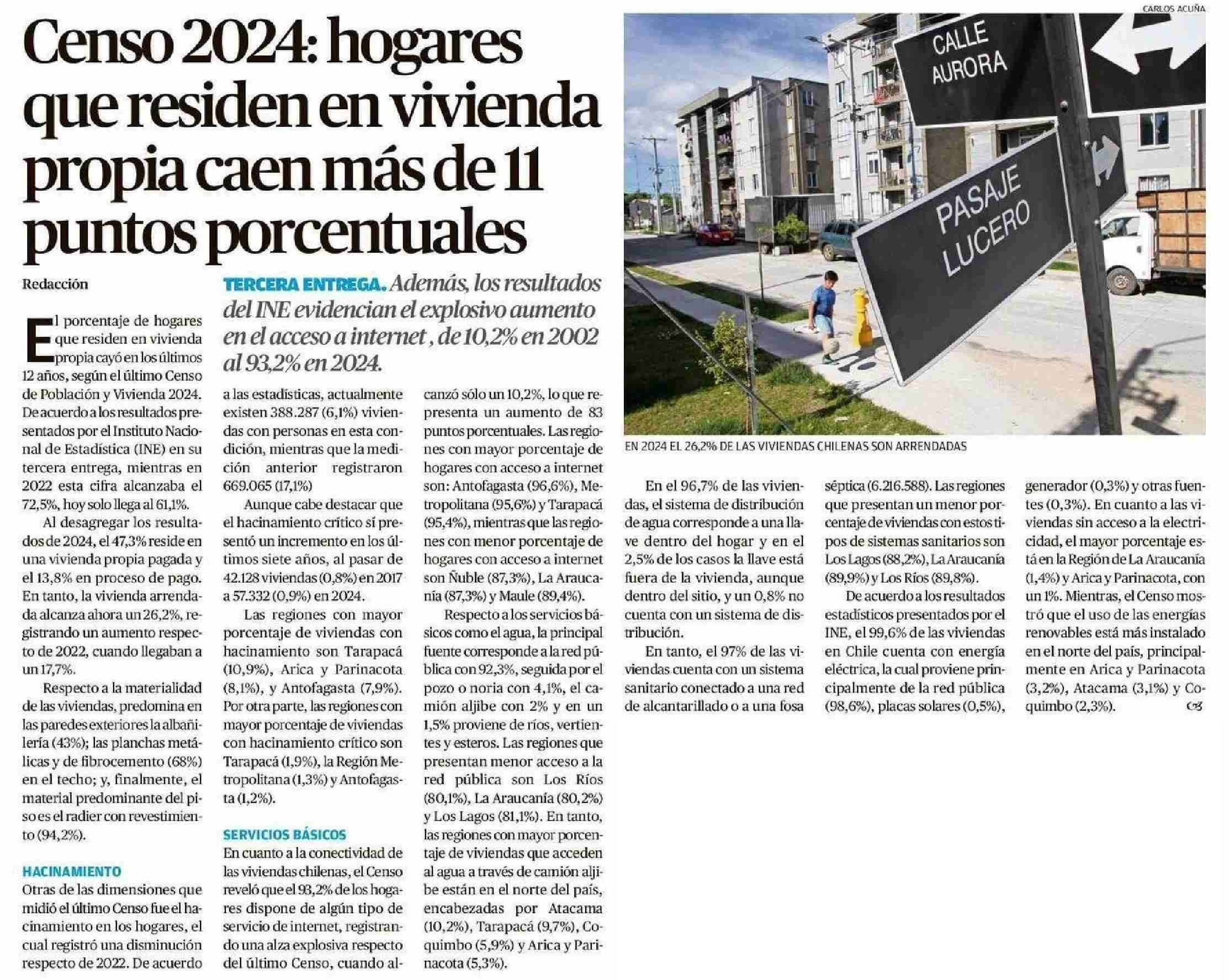 Censo 2024: hogares que residen en vivienda propia caen más de 11 puntos porcentuales 31-05-2025 El Austral de Osorno |