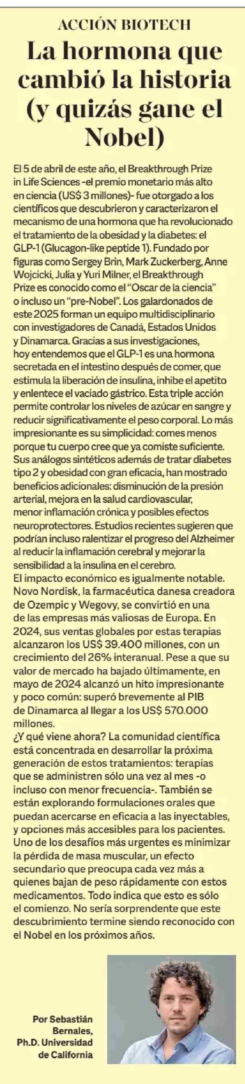 La hormona que cambió la historia (y quizás gane el Nobel) 27-04-2025 Diario Financiero |