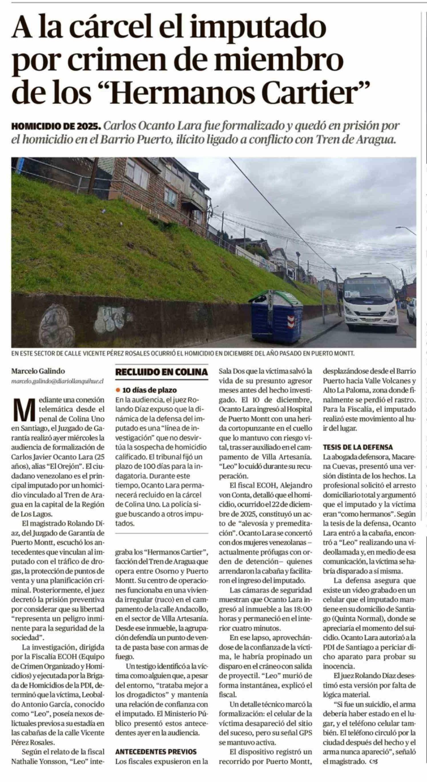 Título: A la cárcel el imputado por crimen de miembro de los "Hermanos Cartier"