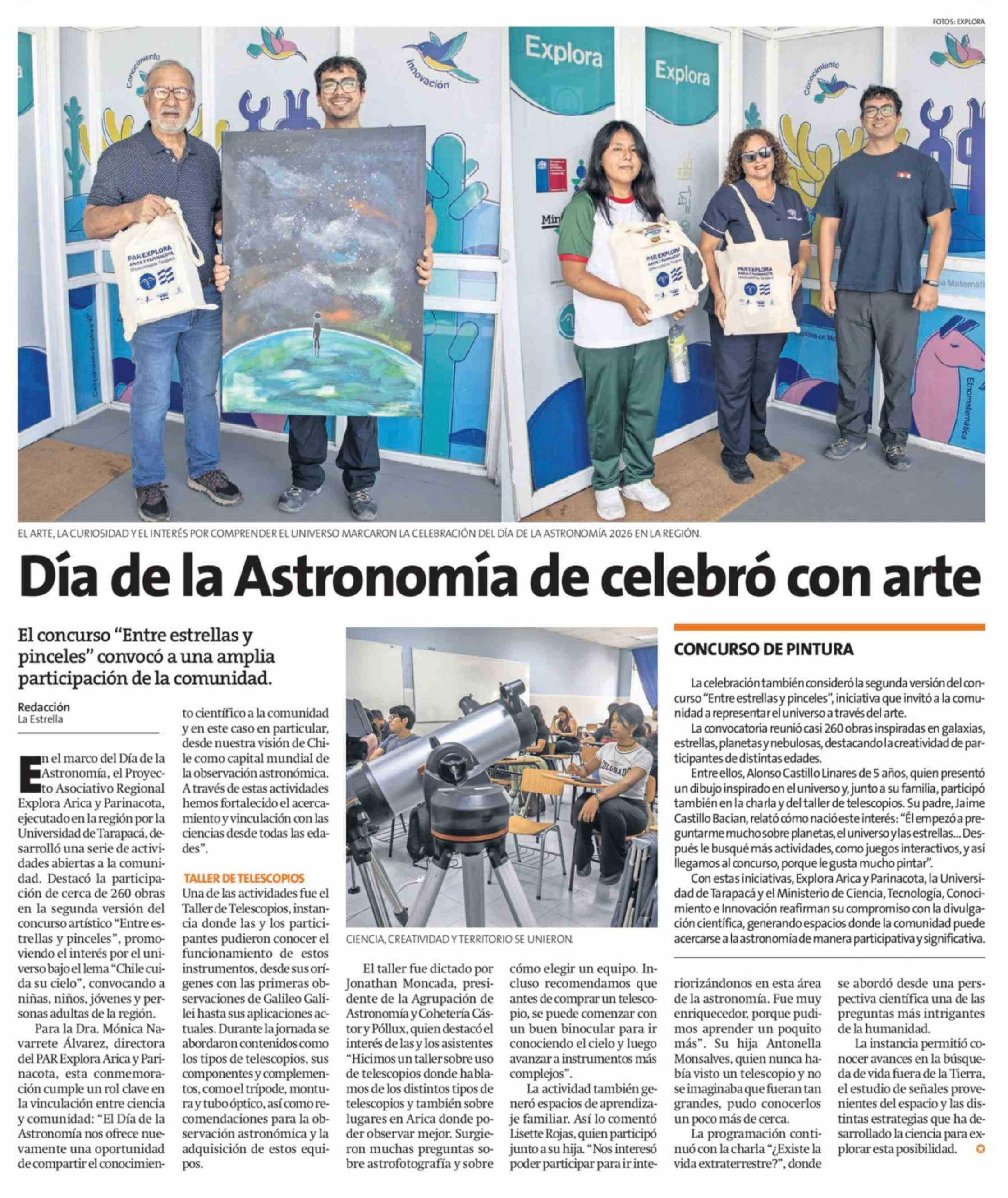 Día de la Astronomía de celebró con arte 05-04-2026 La Estrella de Arica |