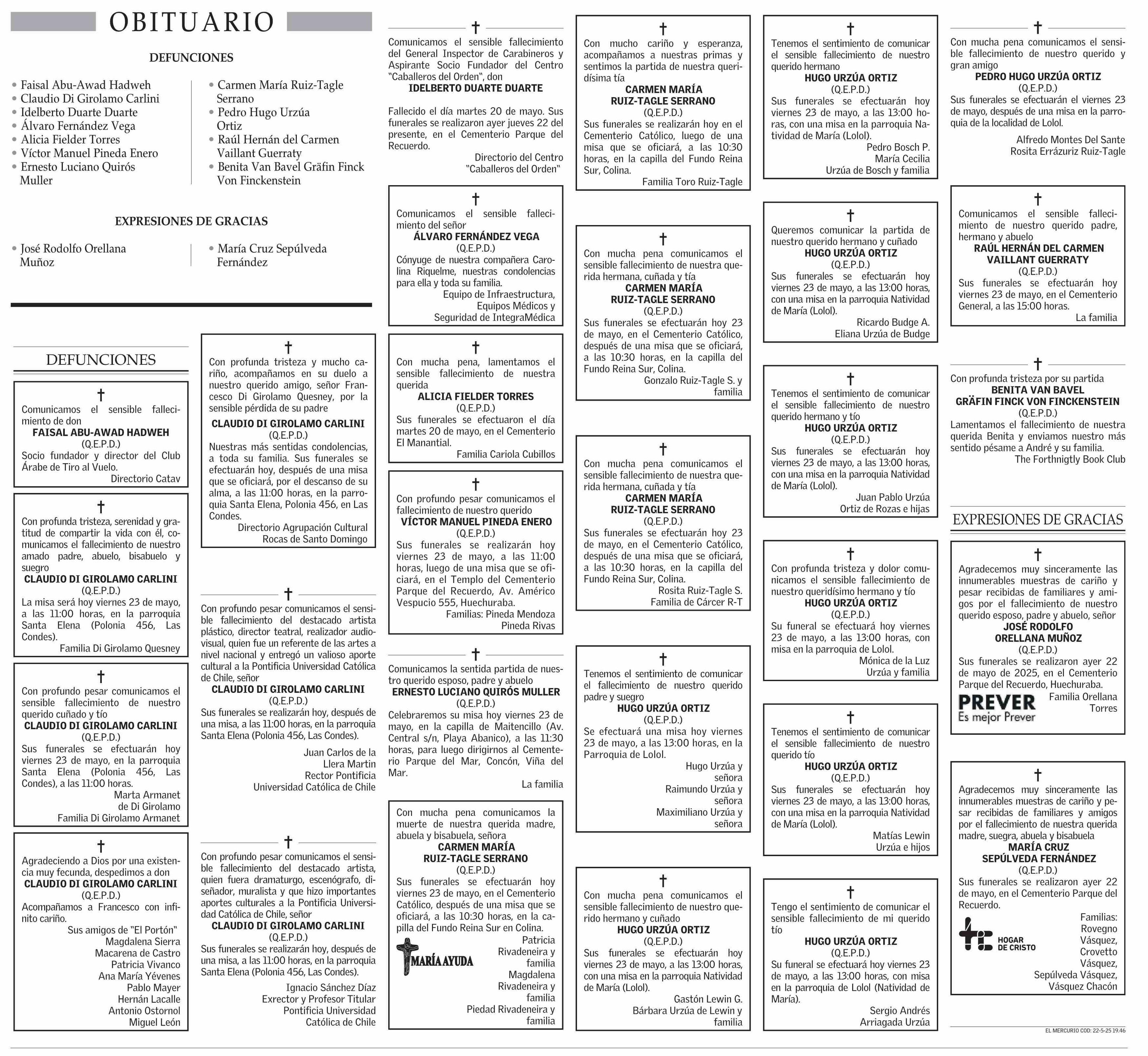 O B I T U A R I O 23-05-2025 El Mercurio |