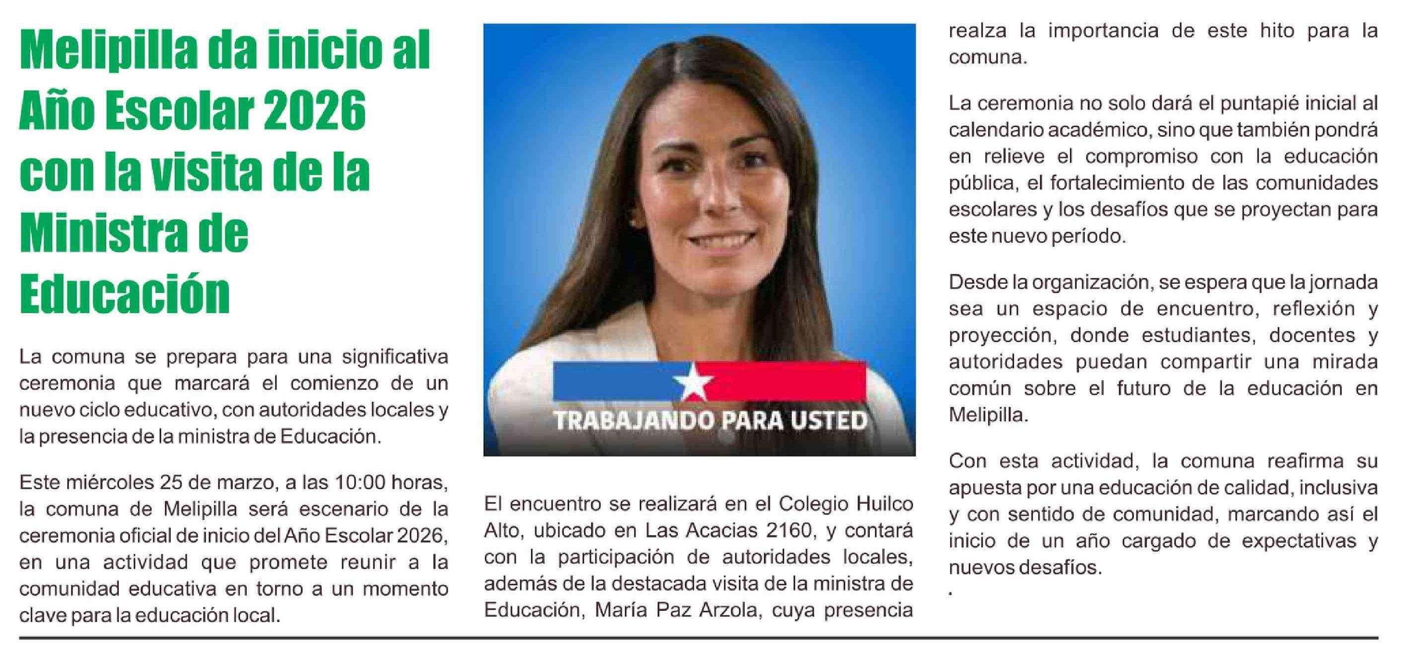 Título: Melipilla da inicio al Año Escolar 2026 con la visita de la Ministra de Educación