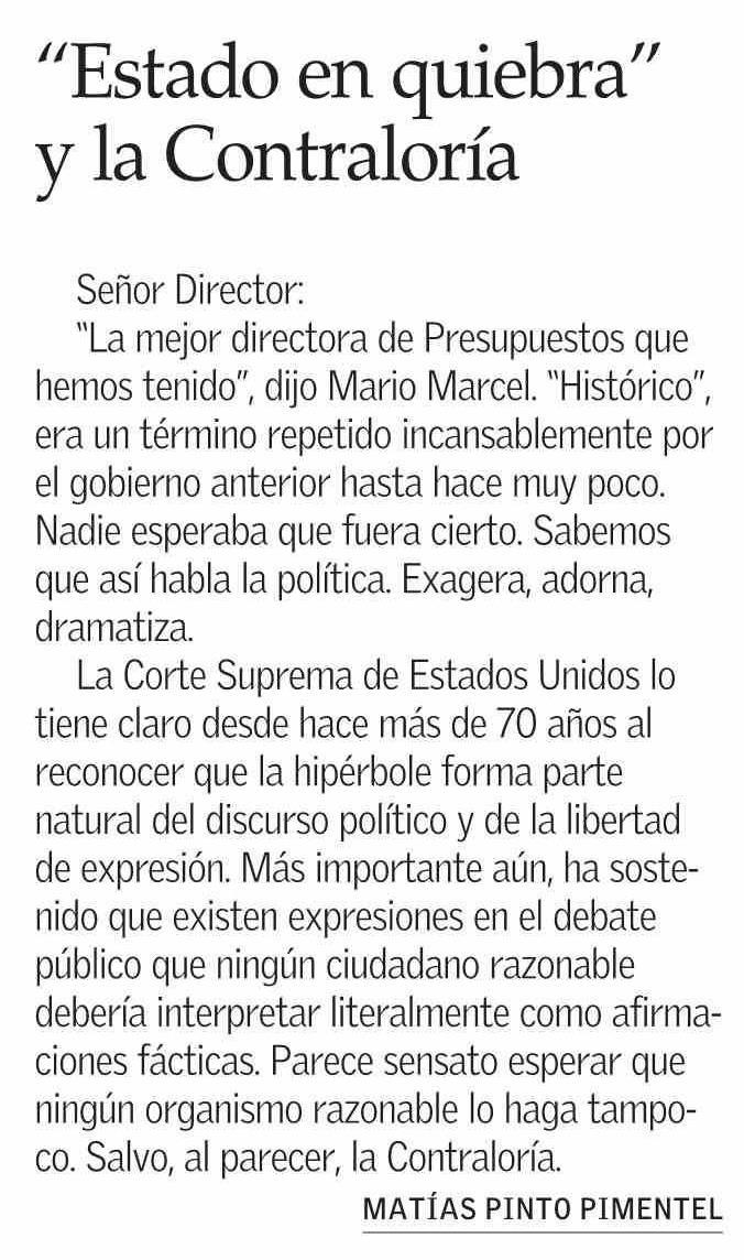 | Título: | Cartas: “Estado en quiebra” y la Contraloría |