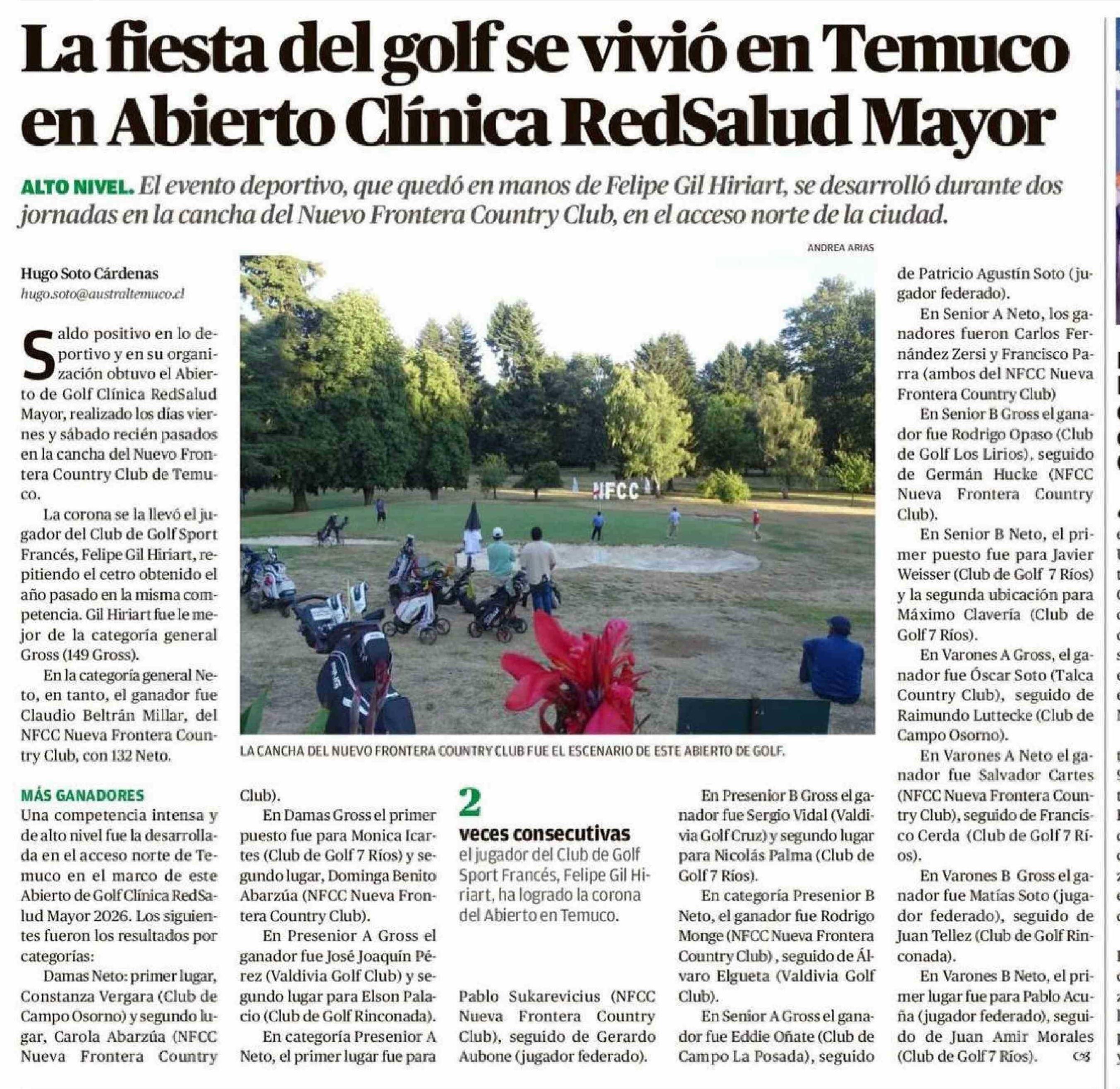 La fiesta del golf se vivió en Temuco en Abierto Clínica RedSalud Mayor 12-01-2026 El Austral de la Araucanía |