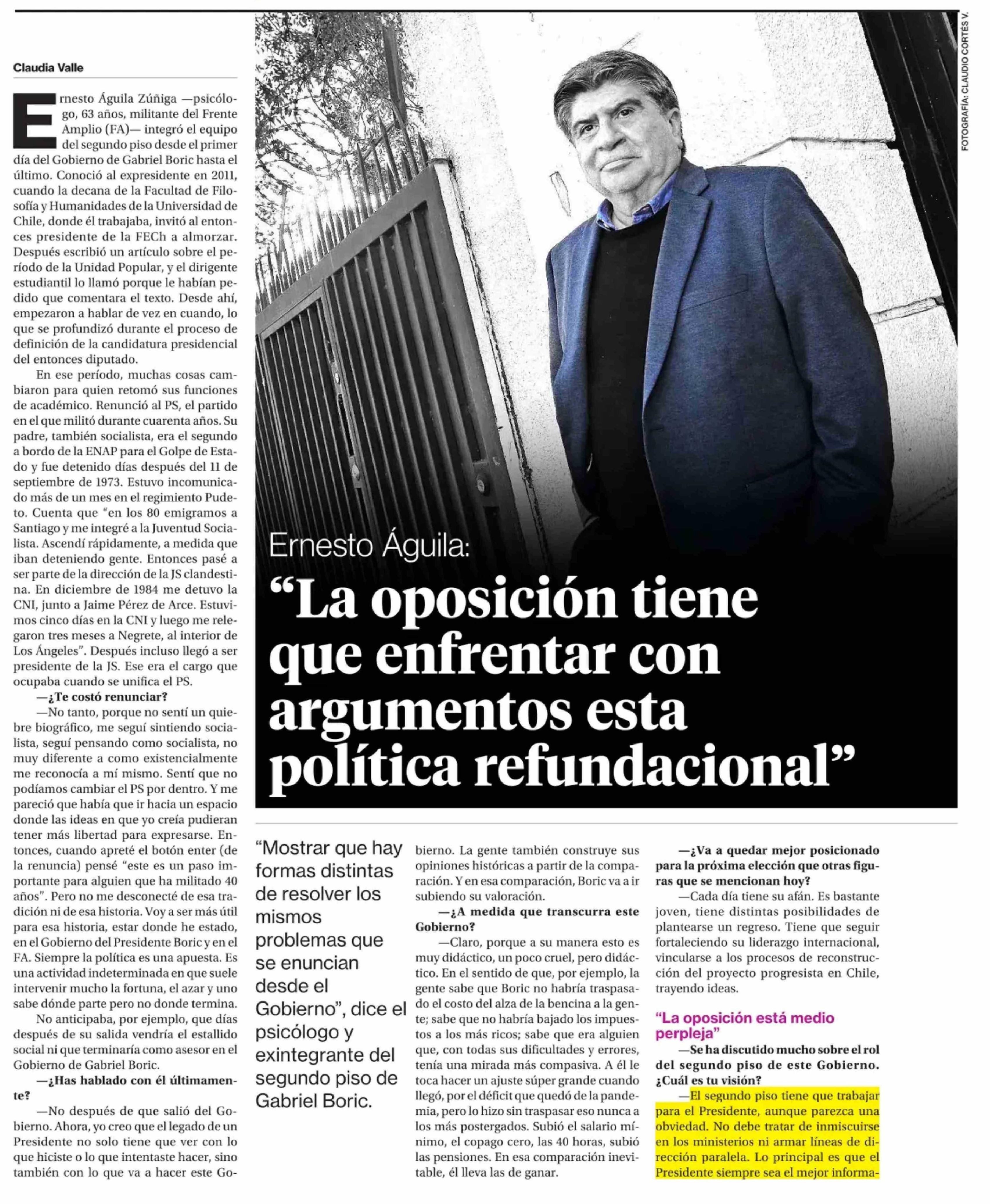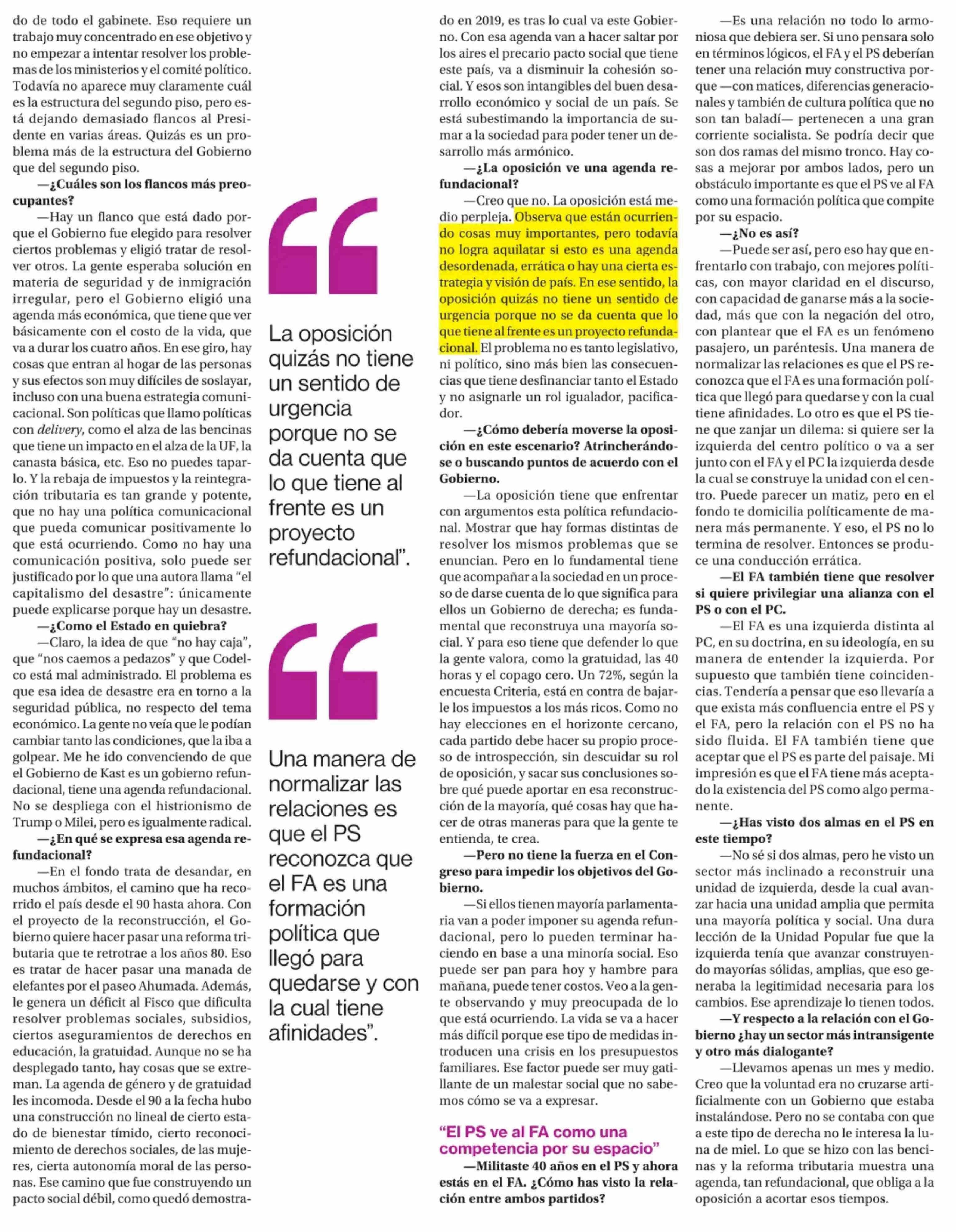 "La oposición tiene que enfrentar con argumentos esta política refundacional" 24-04-2026 La Segunda |