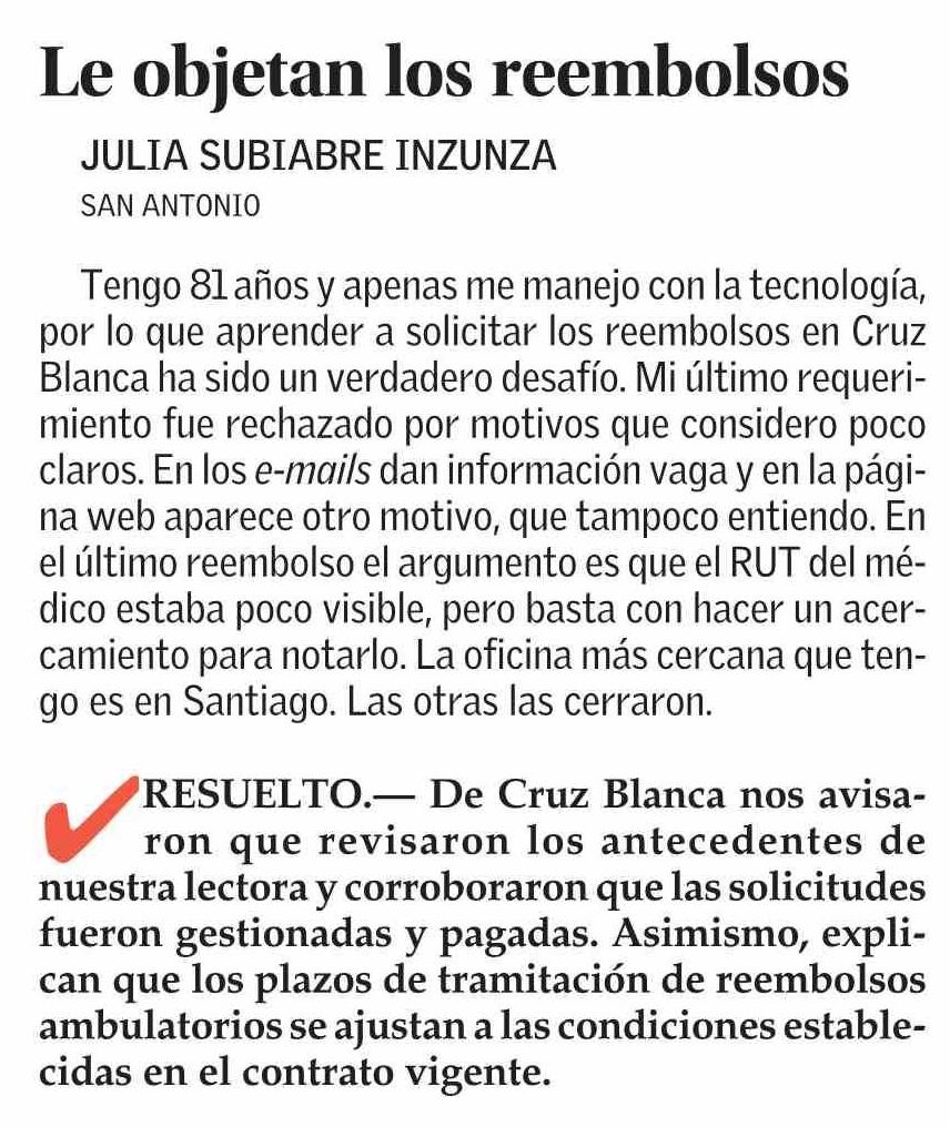 Título: Cartas: Le objetan los reembolsos