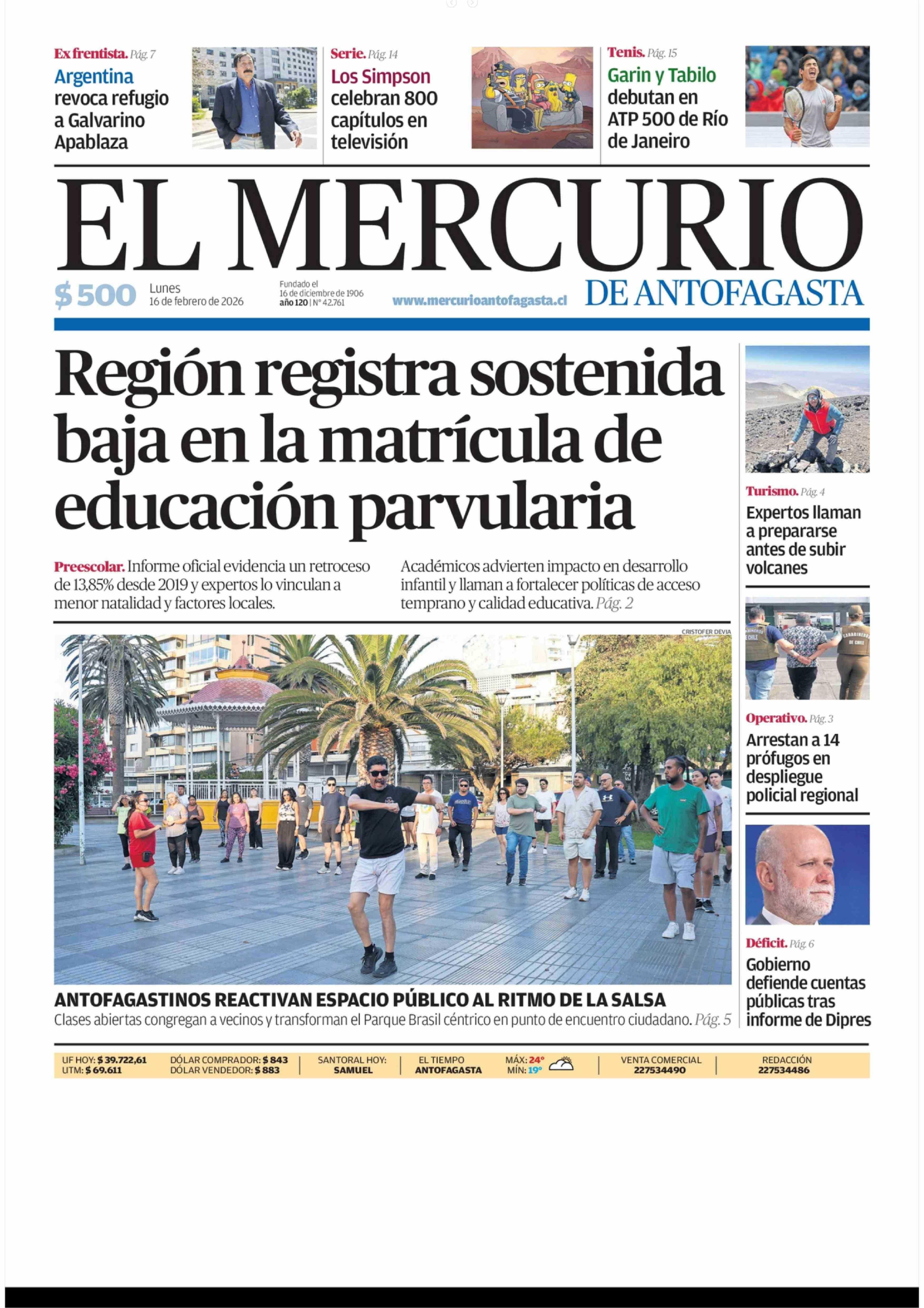 | Fecha: | 16-02-2026 | Sector: | Portada | Región: | Región de Antofagasta |