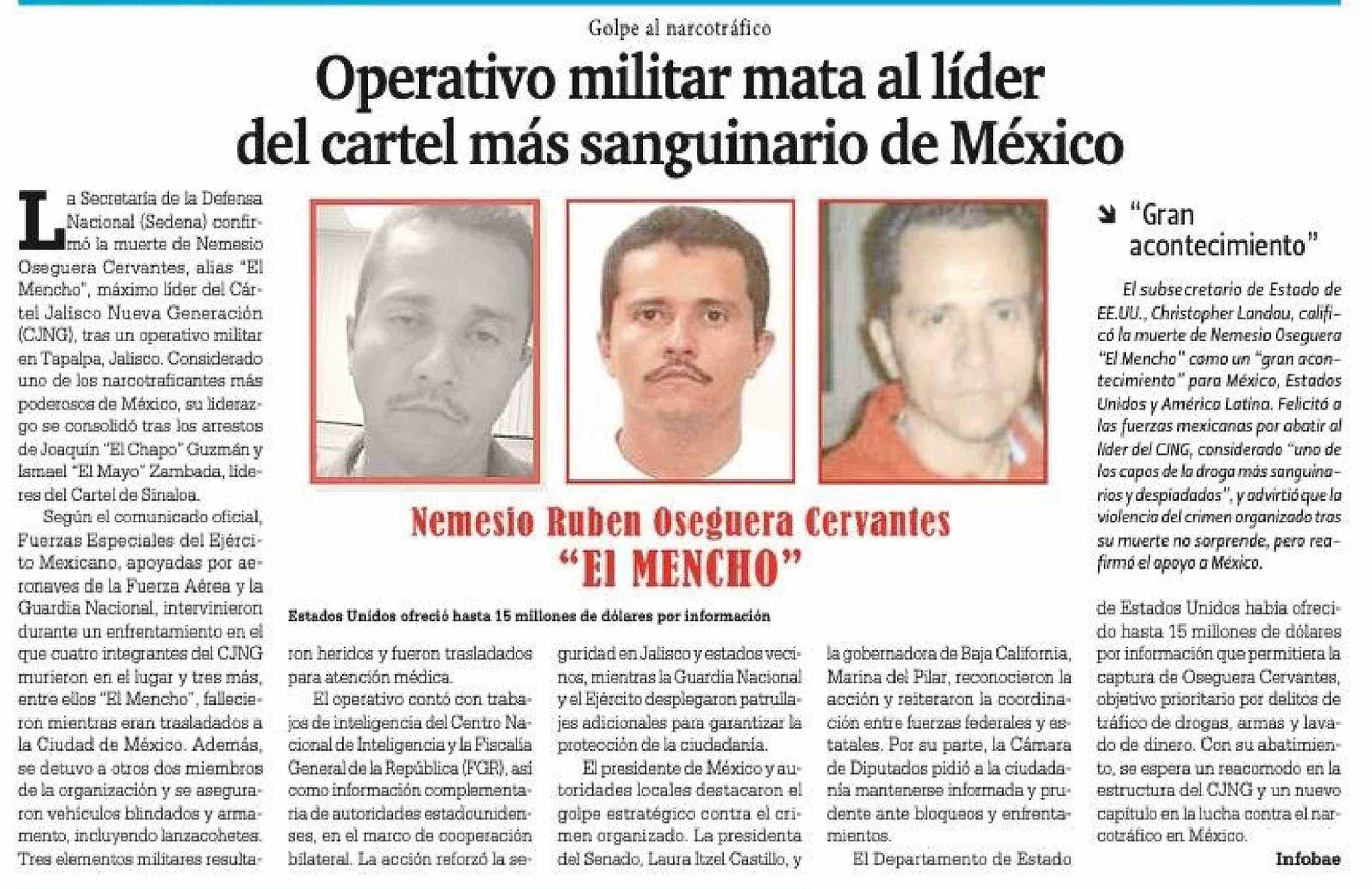 | Título: | Operativo militar mata al líder del cartel más sanguinario de México |