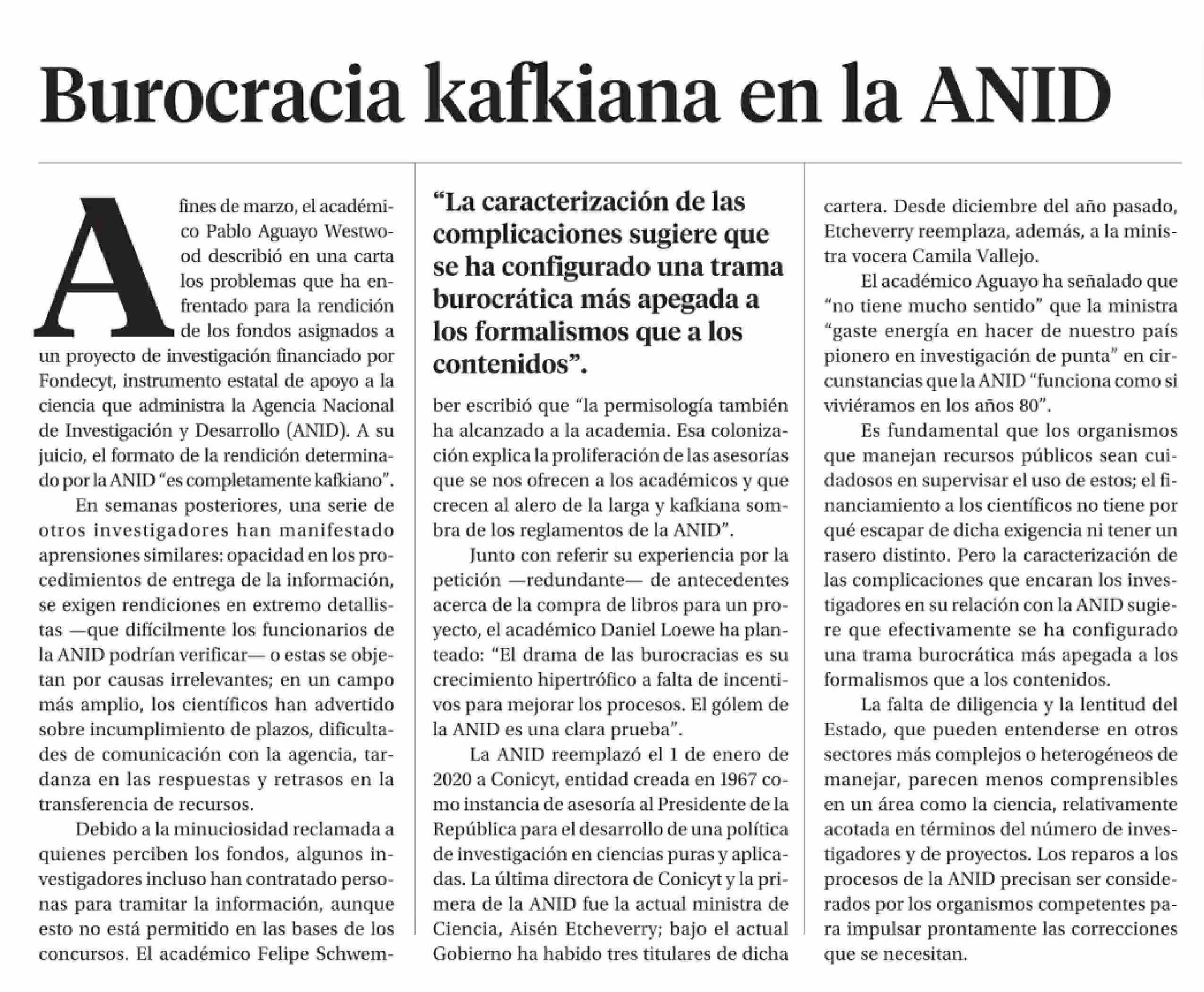 EDITORIAL: Burocracia kafkiana en la ANID 06-05-2025 La Segunda |