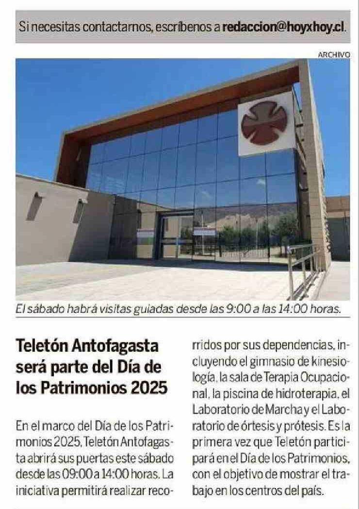 Teletón Antofagasta será parte del Día de los Patrimonios 2025 20-05-2025 Hoy x Hoy Antofagasta |