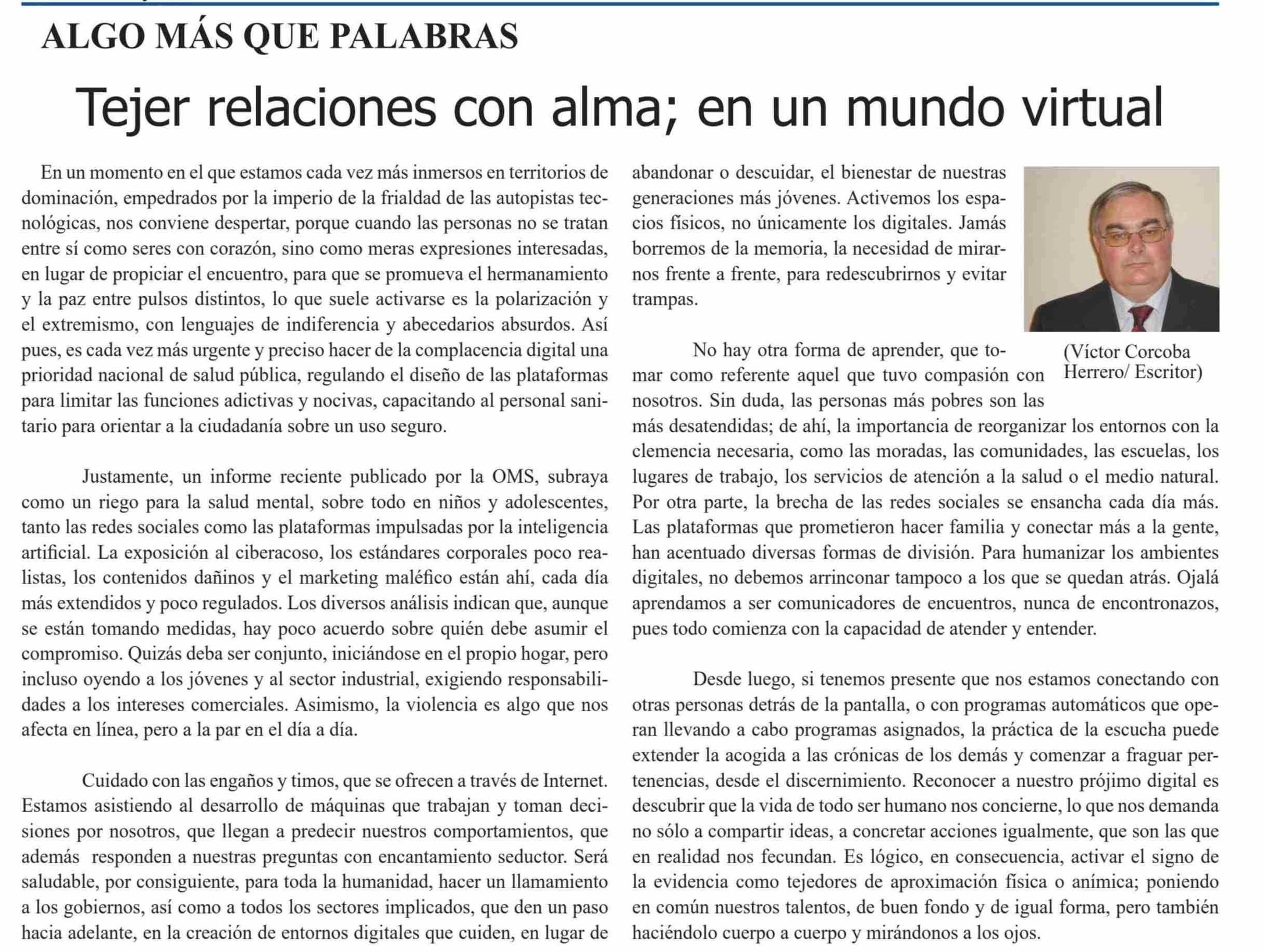 COLUMNAS DE OPINIÓN: Tejer relaciones con alma; en un mundo virtual 27-05-2025 El Heraldo |