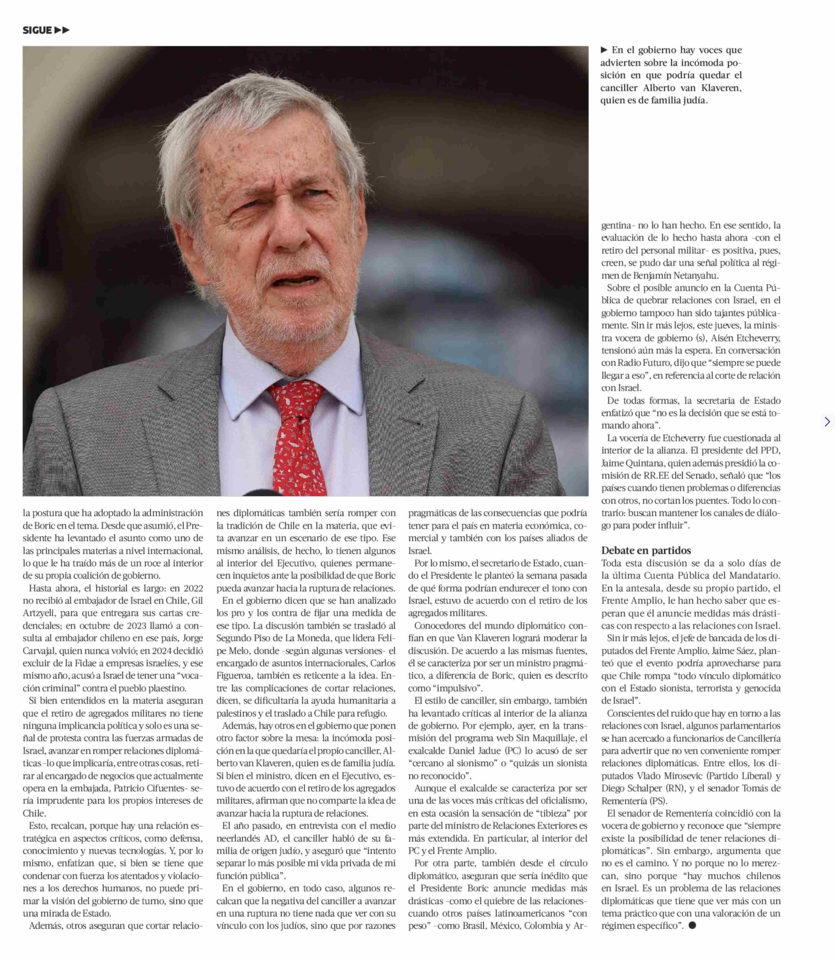 Romper relaciones con Israel: la idea que sondea Boric y que divide a sus equipos 30-05-2025 La Tercera |