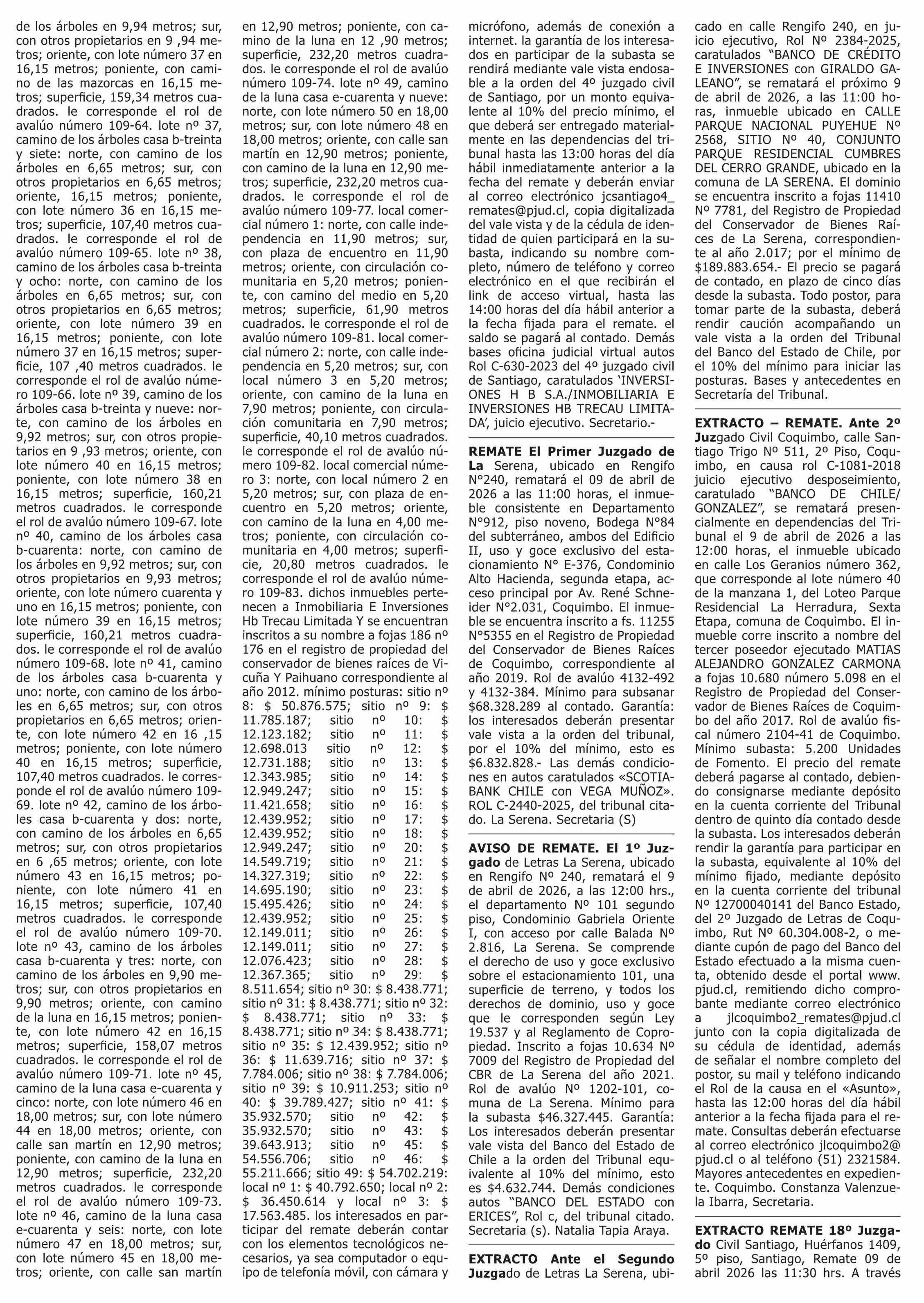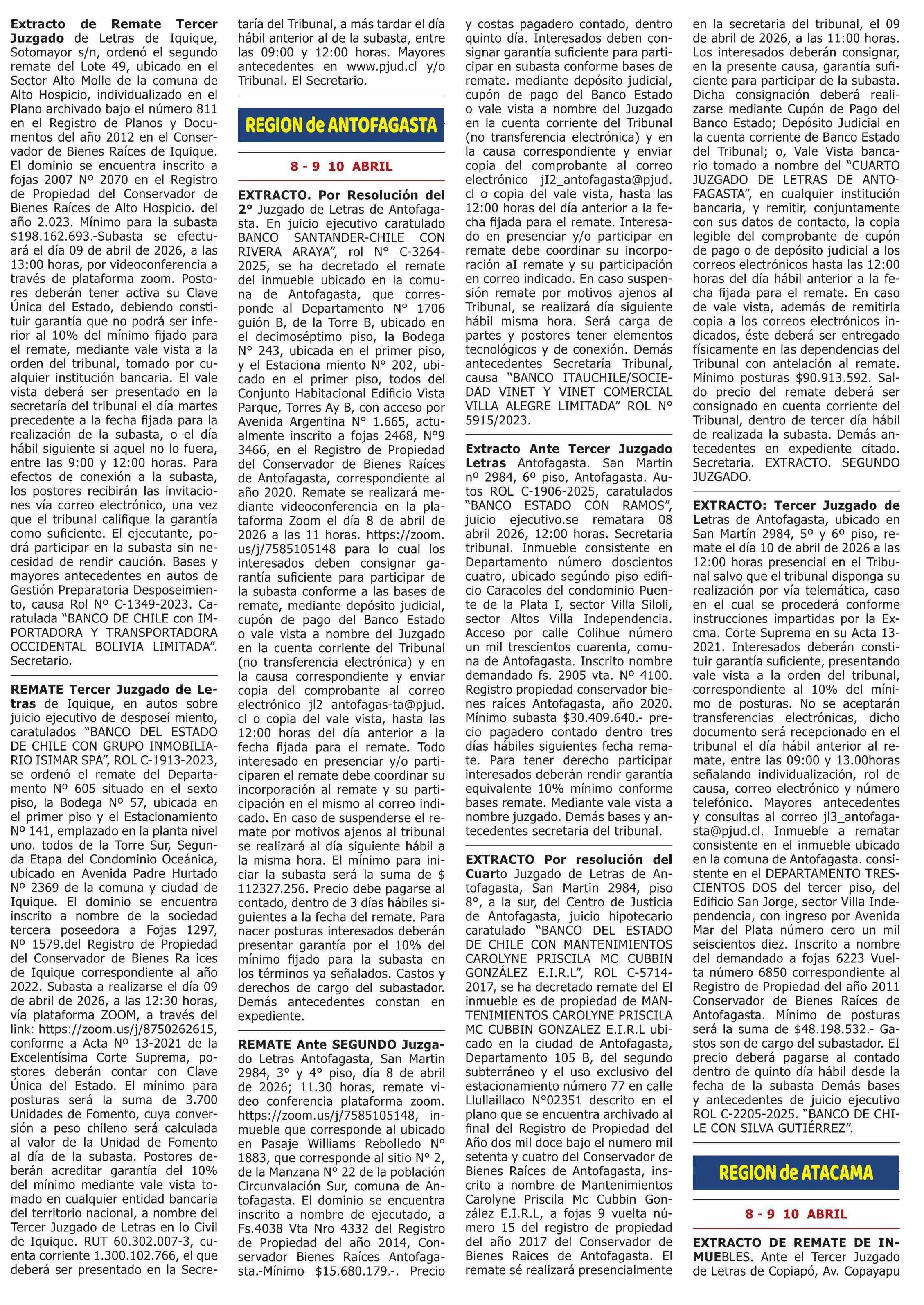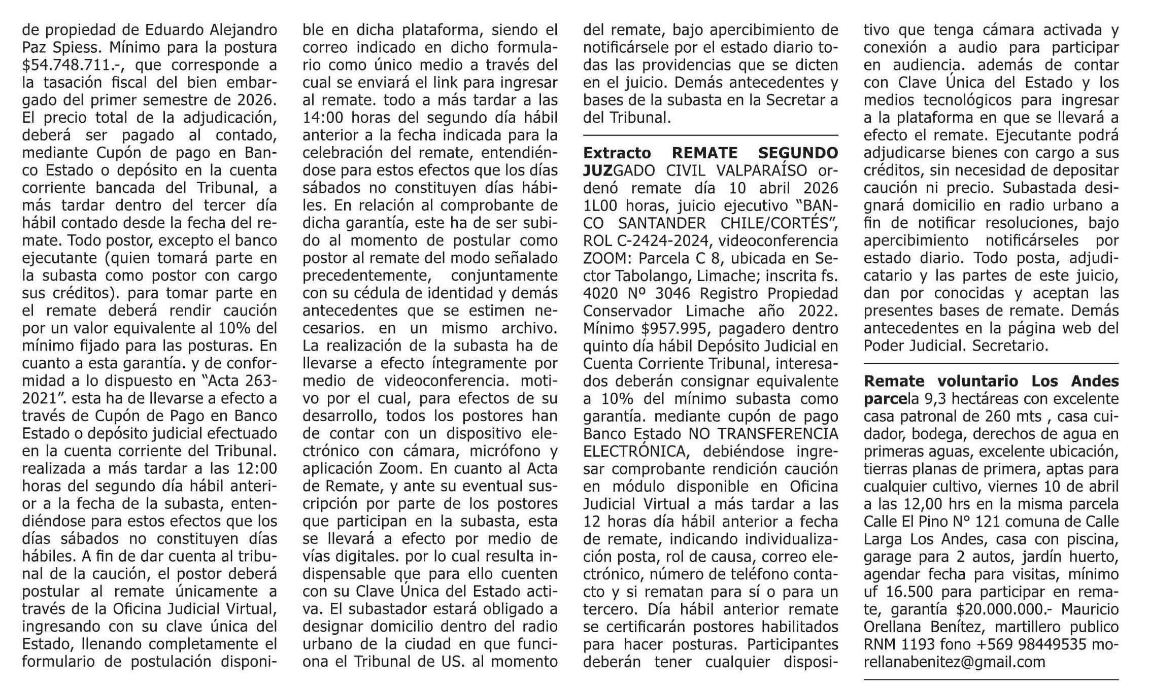 | Fecha: | 31-03-2026 | Sector: | Remates | Región: | Región Metropolitana de Santiago |