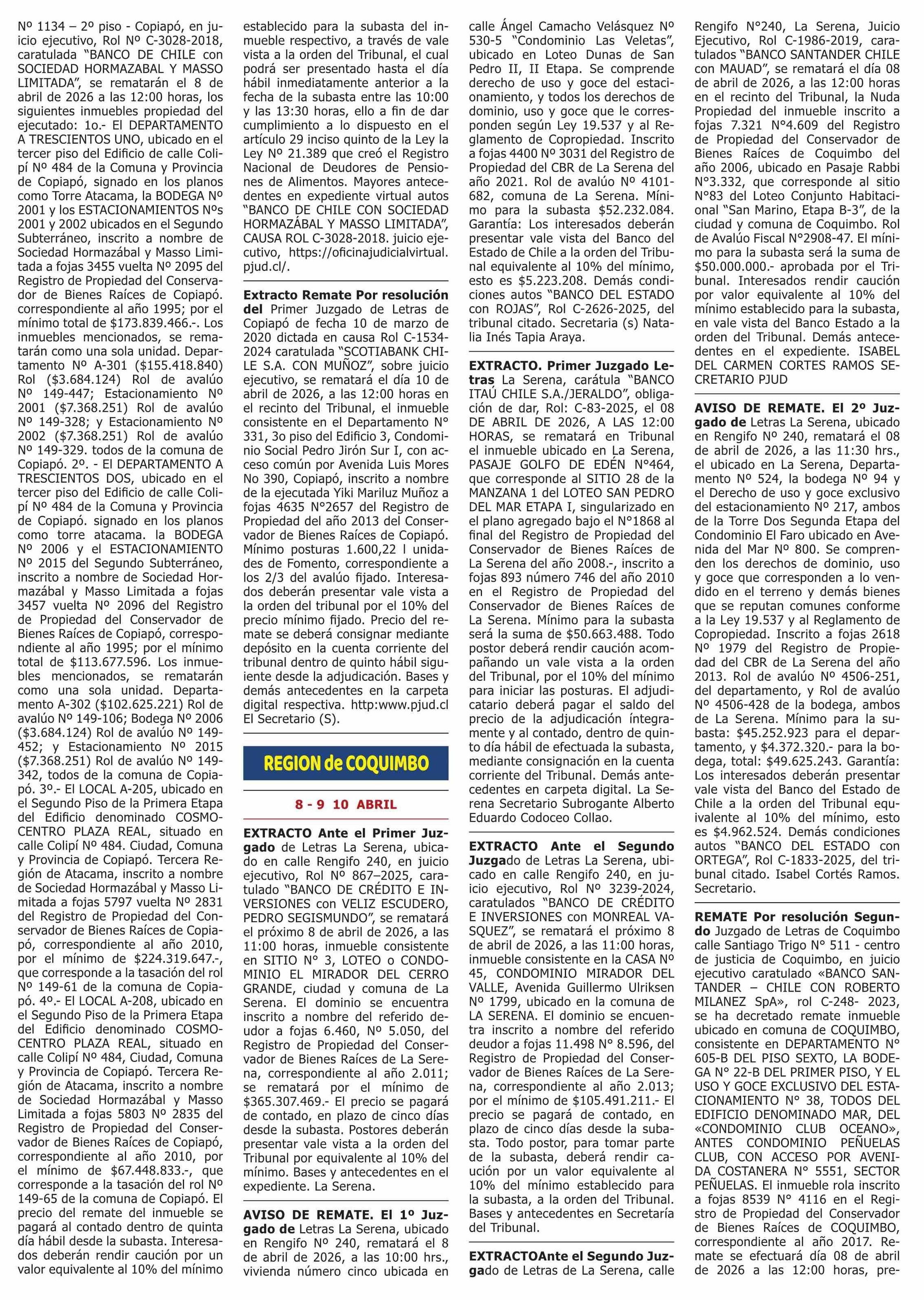 | Título: | REMATES: REMATES de PROPIEDADES (ORDENADOS por REGIONES |