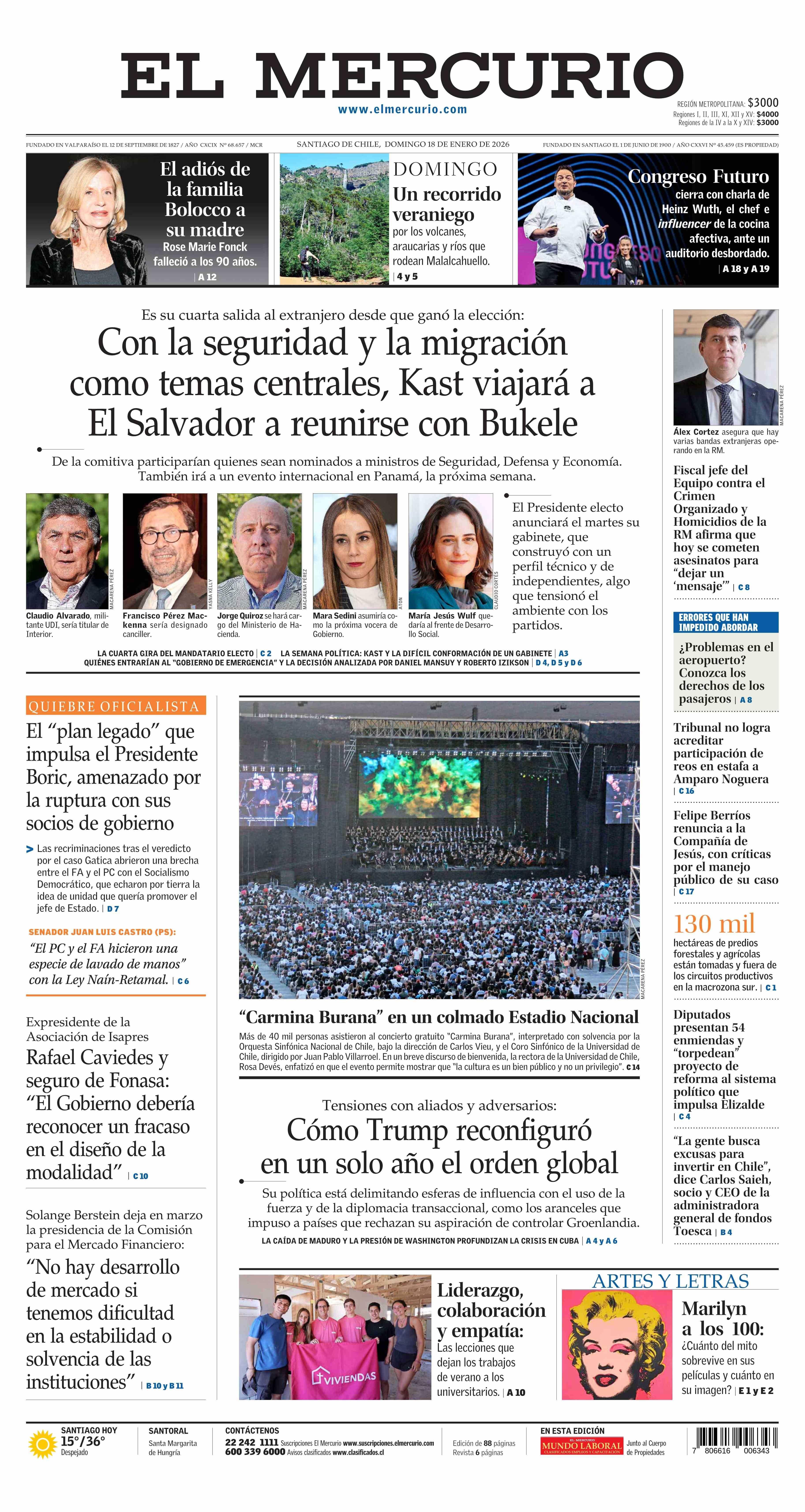 PORTADA EL MERCURIO (A) CHILE 18-01-2026 El Mercurio |