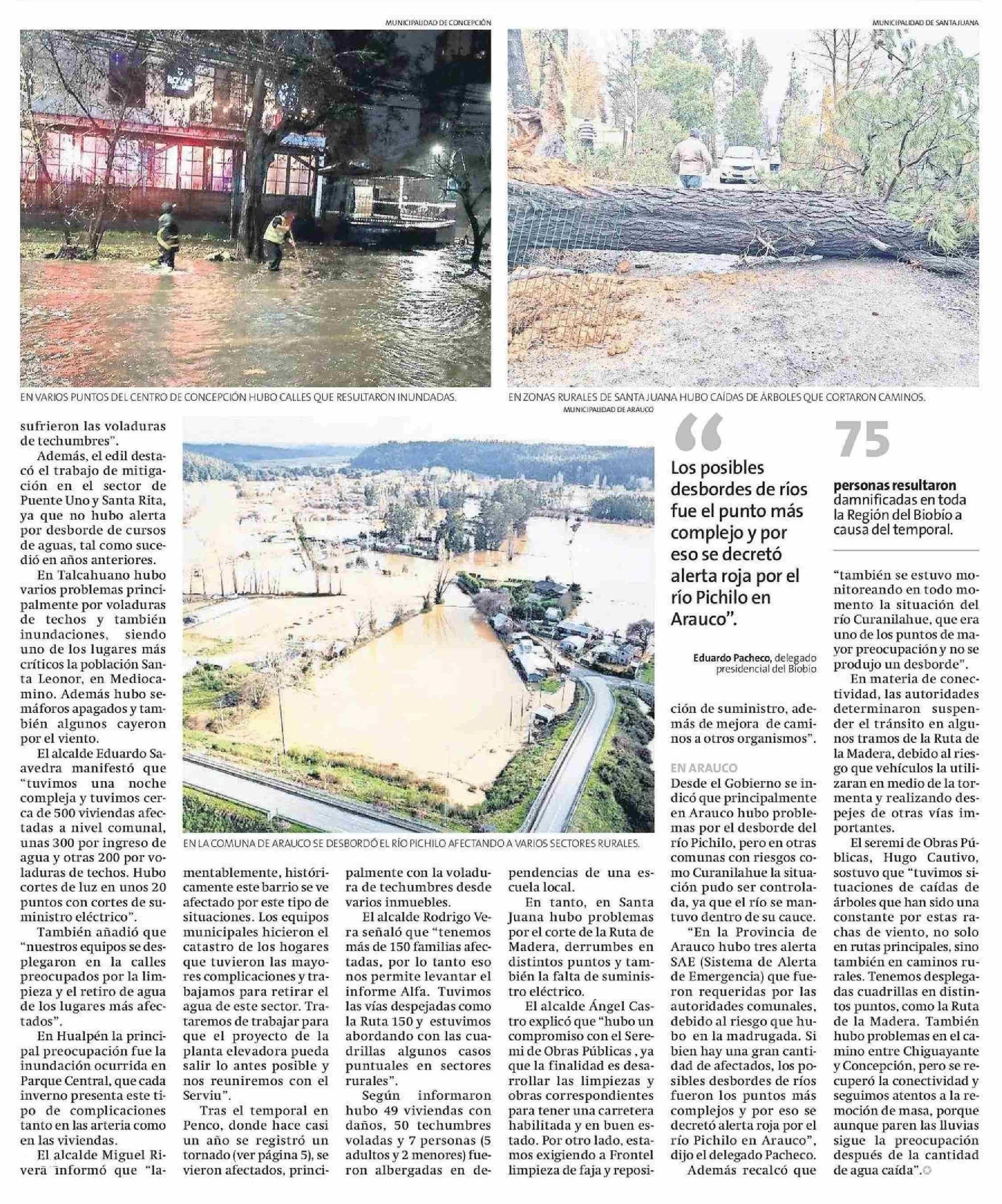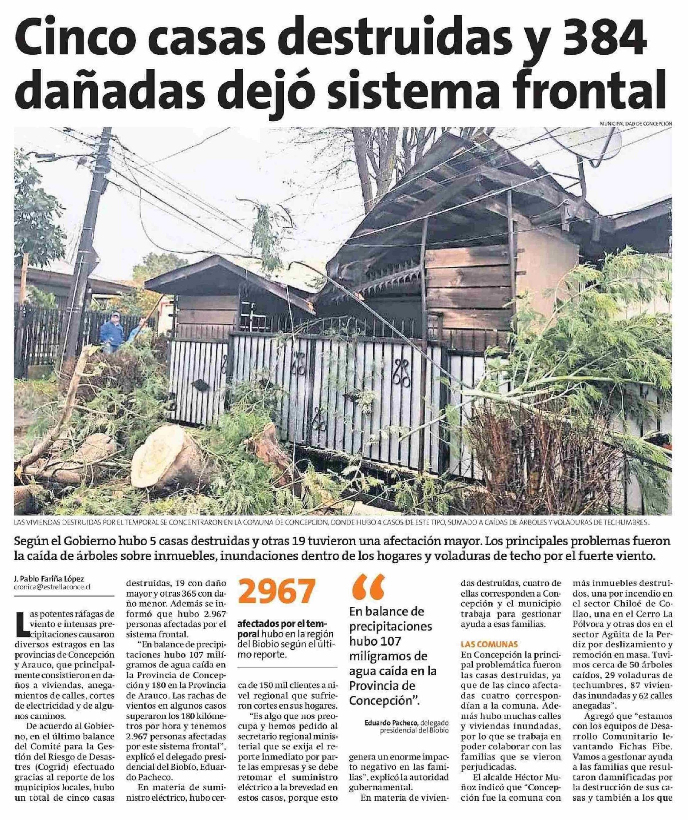 Cinco casas destruidas y 384 dañadas dejó sistema frontal 16-06-2025 La Estrella de Concepción |