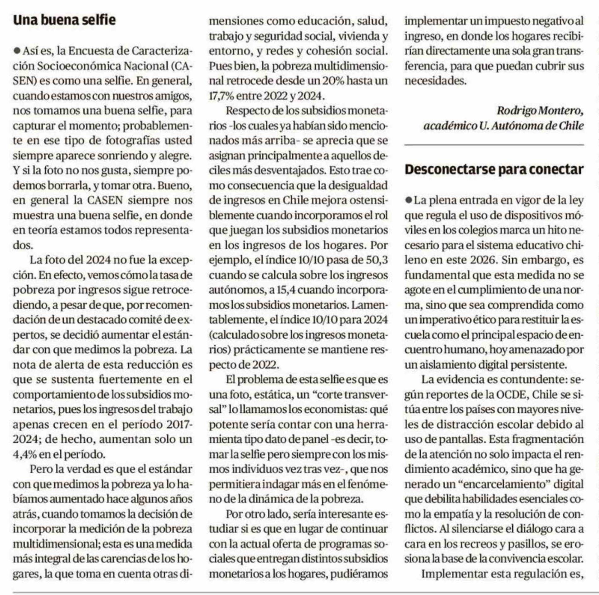 Cartas: Una buena selfie 27-01-2026 El Austral de Osorno |