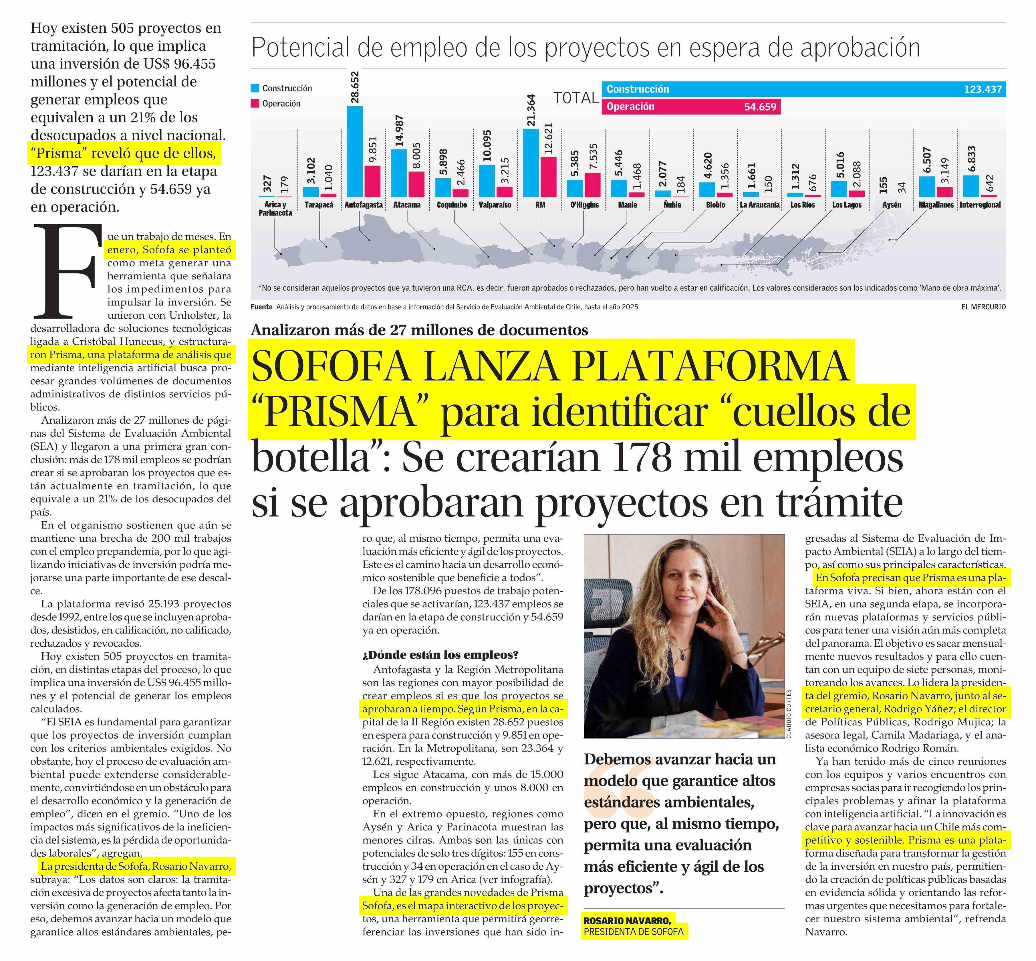 SOFOFA LANZA PLATAFORMA “PRISMA” para identificar “cuellos de botella”: Se crearían 178 mil empleos si se aprobaran proyectos en trámite 04-05-2025 El Mercurio |