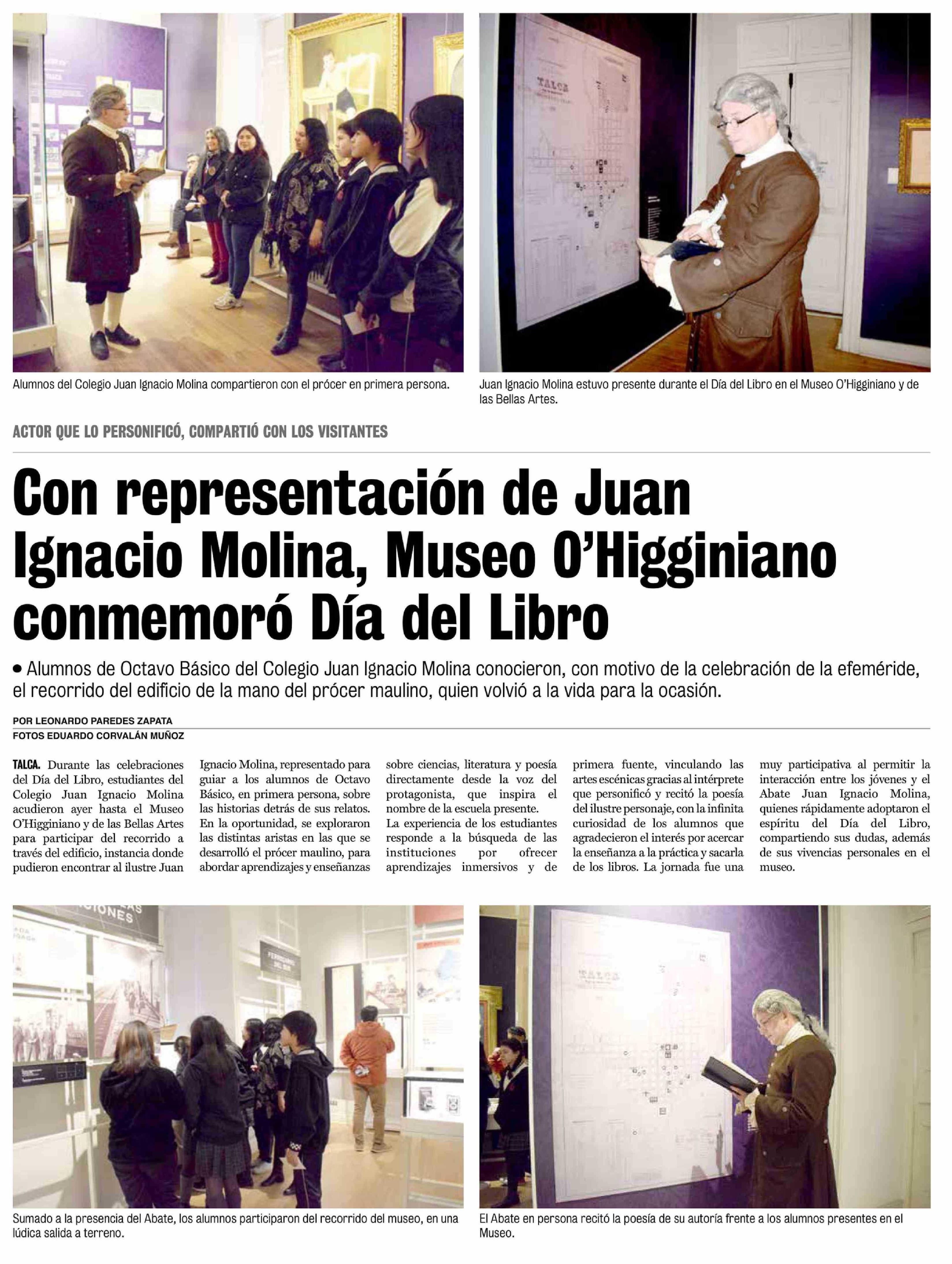 Con representación de Juan Ignacio Molina, Museo O'Higginiano conmemoro Día del Libro 24-04-2026 La Prensa de Curicó |