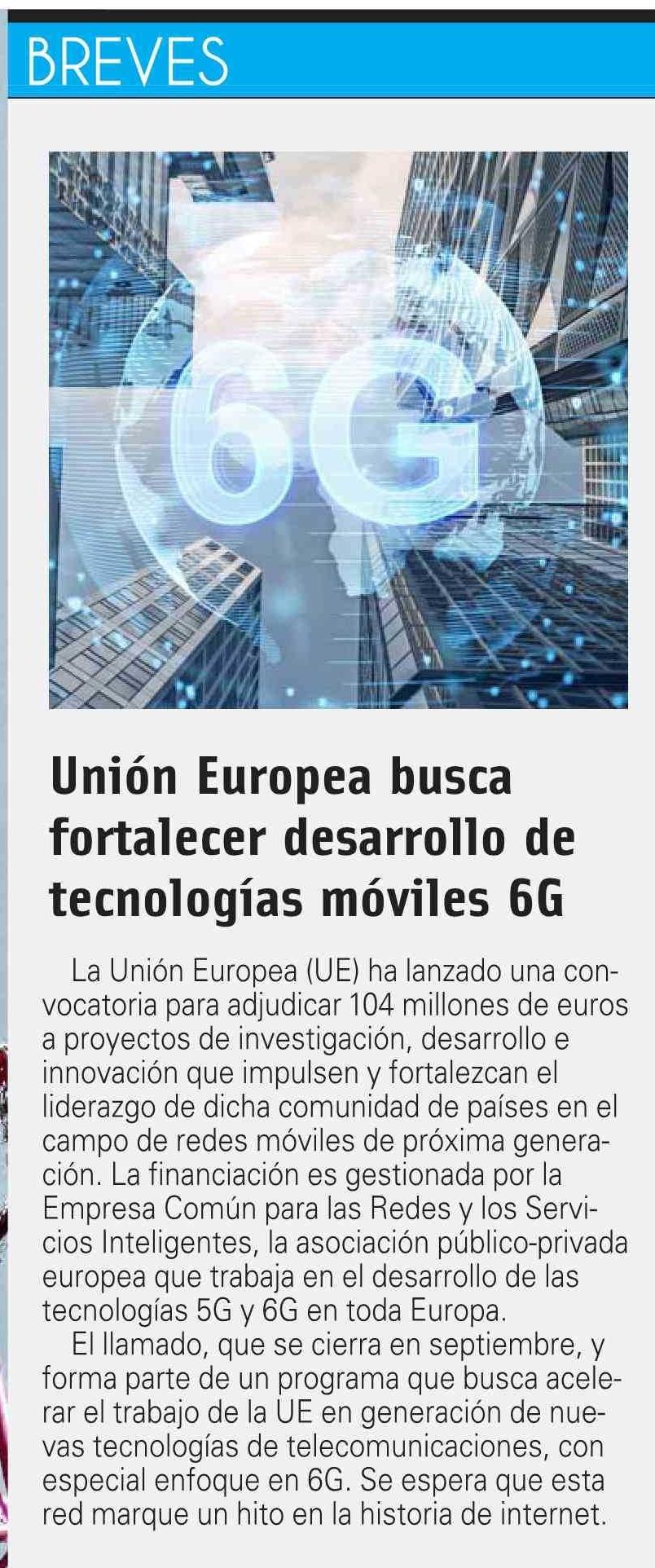 | Título: | Unión Europea busca fortalecer desarrollo de tecnologías móviles 6G |