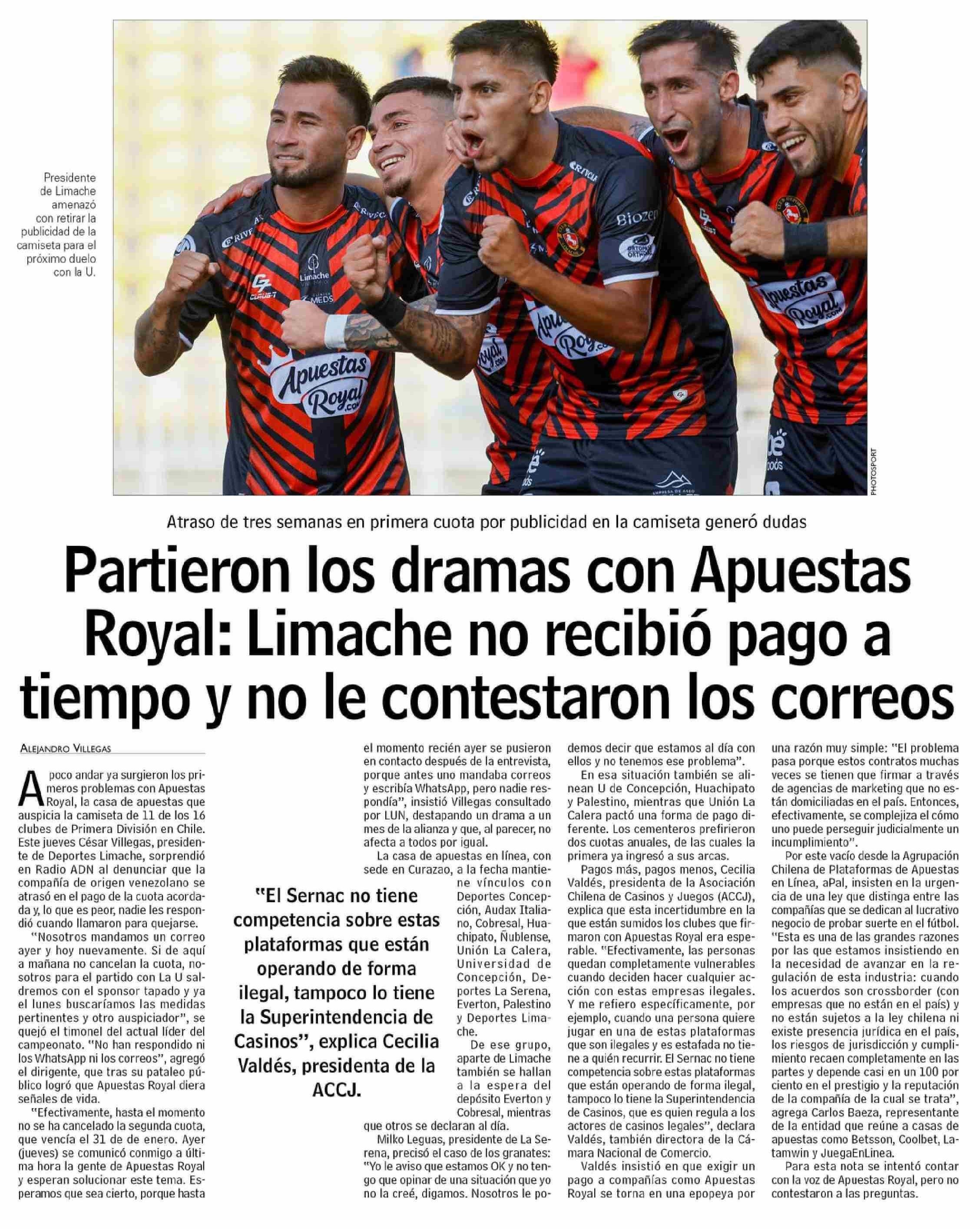 Título: Partieron los dramas con Apuestas Royal: Limache no recibió pago a tiempo y no le contestaron los correos