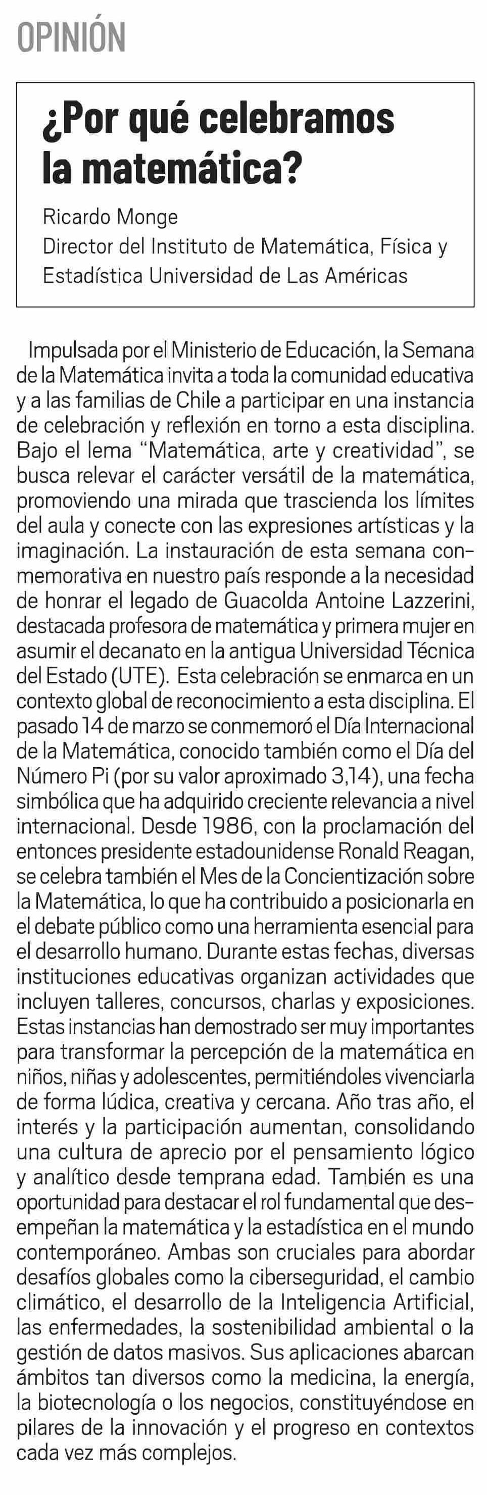 Columnas de Opinión: ¿Por qué celebramos la matemática? 08-05-2025 El Día |