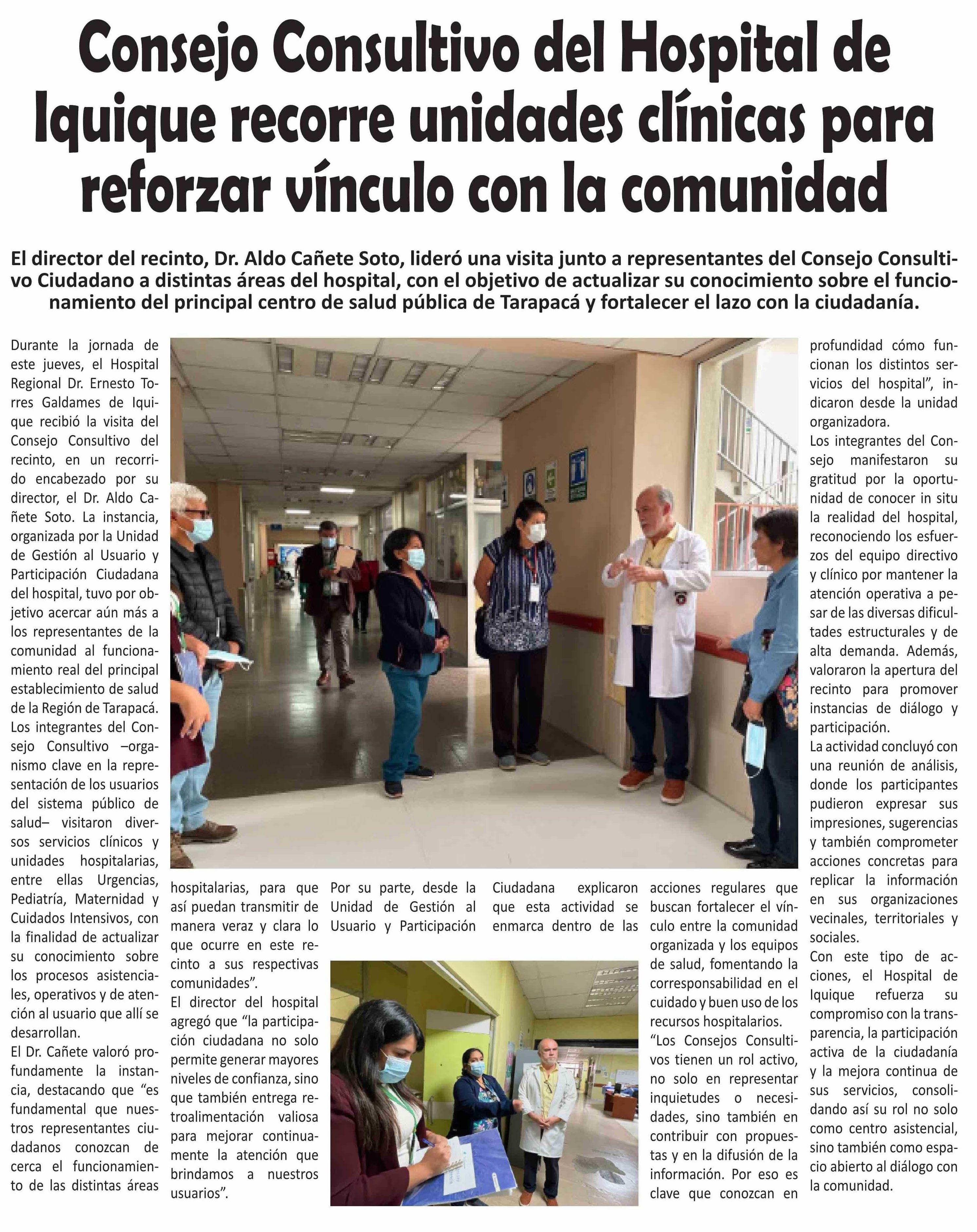 | Título: | Consejo Consultivo del Hospital de Iquique recorre unidades clínicas para reforzar vínculo con la comunidad |